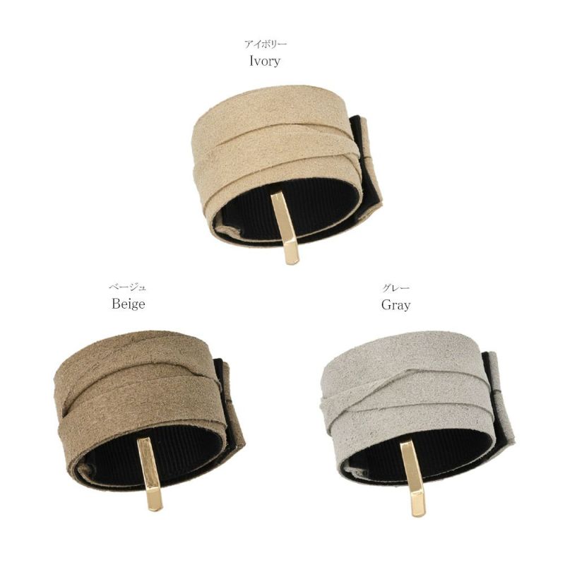 ヘアカフ フェイクレザー スエード風 クラップカフ スリムタイプ ヘアポニー ポニーフック