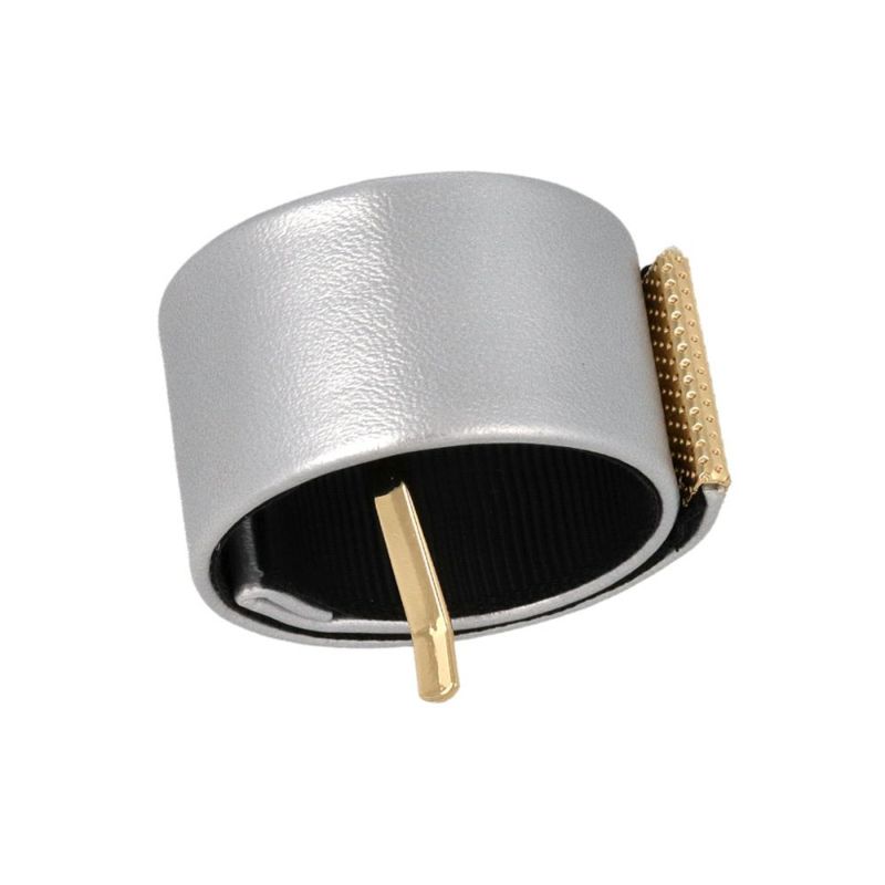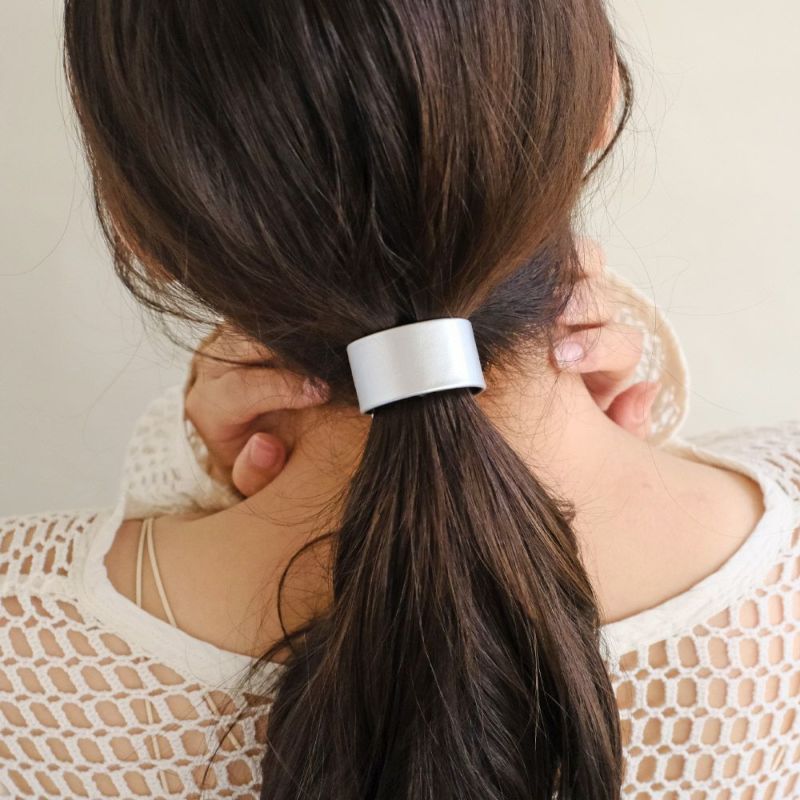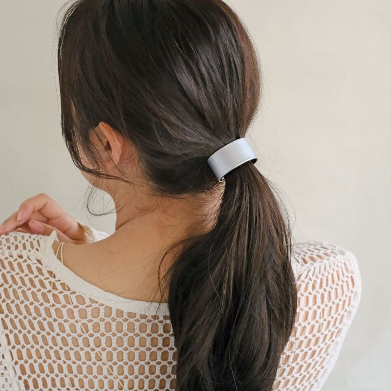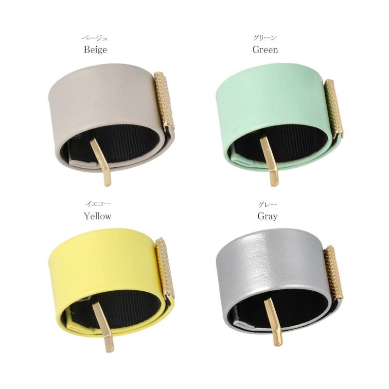 ヘアカフ フェイクレザー カラー メタル ライン クラップカフ スリムタイプ ヘアポニー ポニーフック