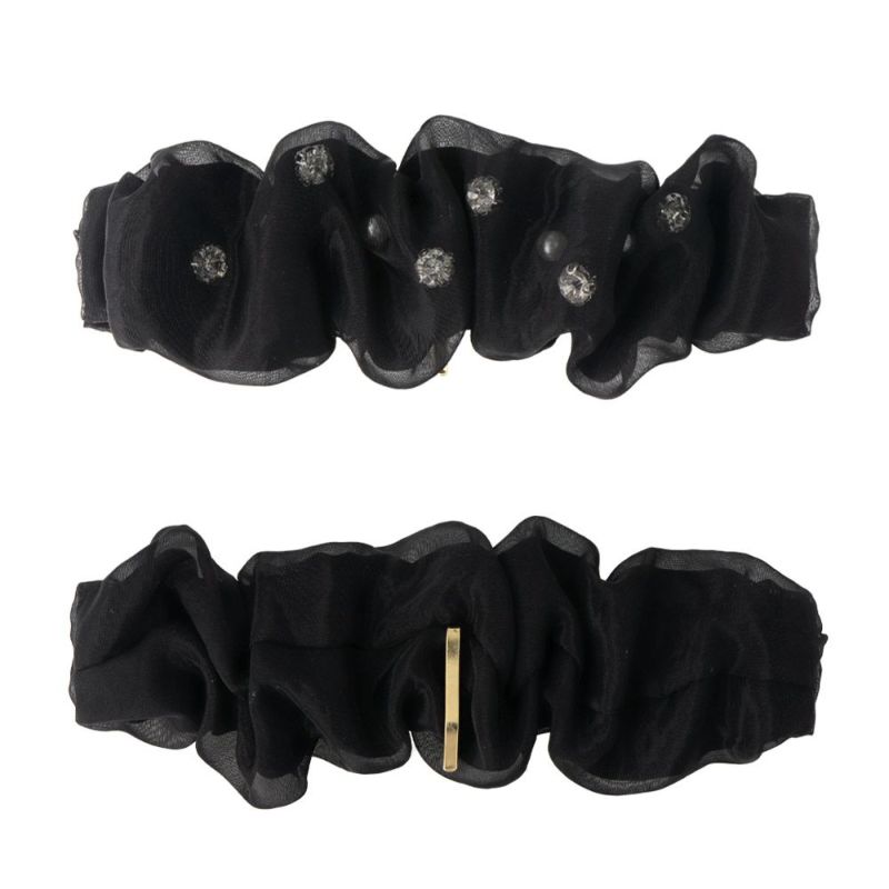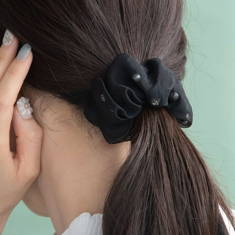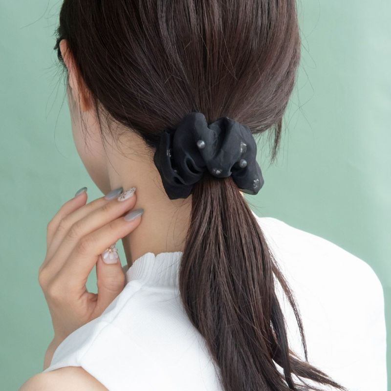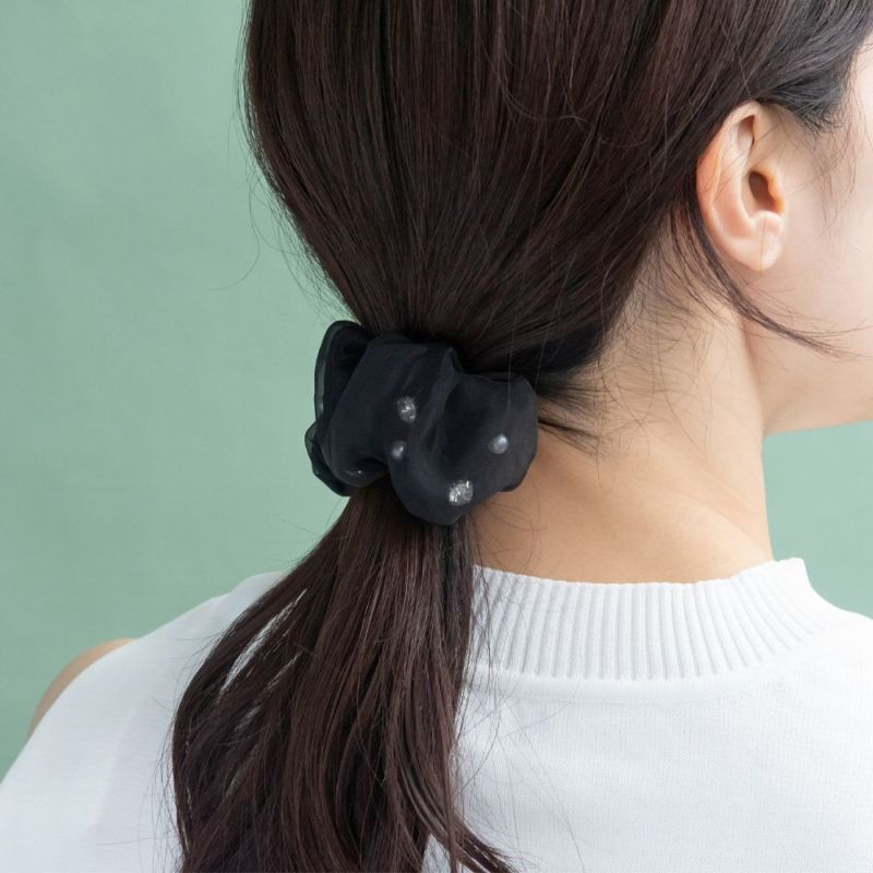 ヘアカフ シアー ランダム パール ストーン シュシュ風 クラップカフ ヘアポニー ポニーフック