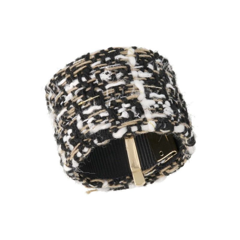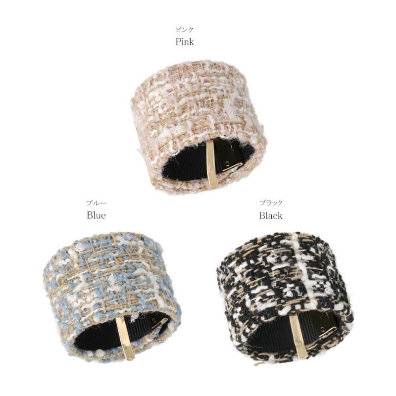 大人の品の良さが漂うツイード風クラップカフ。プラスワンで可愛さもおしゃれ度もアップ。季節感じる温かみある素材感も◎差し色使いにも◎