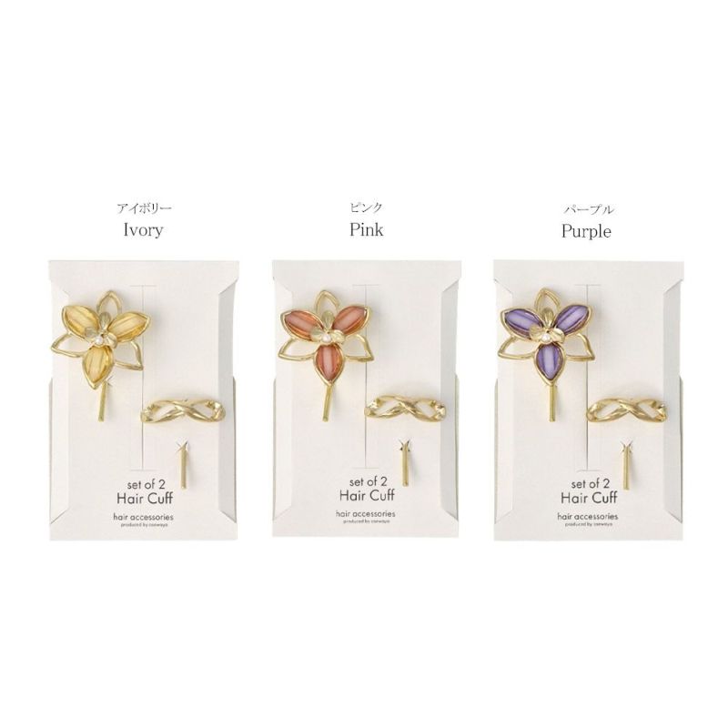 ヘアカフ カラー フラワー インフィニティ メタル パール 2個セット ヘアポニー ポニーフック