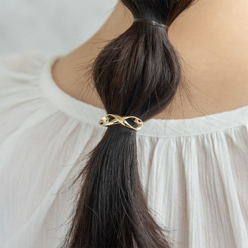 髪を結び、裏側のメタルピンをゴムに差し込むだけ!かんたん2stepでヘアアレンジがつくれます。モチーフが逆さにならず結び目が見えないのでキレイな仕上がりに。ハーフアップやアレンジした毛先に合わせても◎おしゃれな雰囲気がテクニックいらずでつくれる、ちいさめで使いやすいサイズ感。