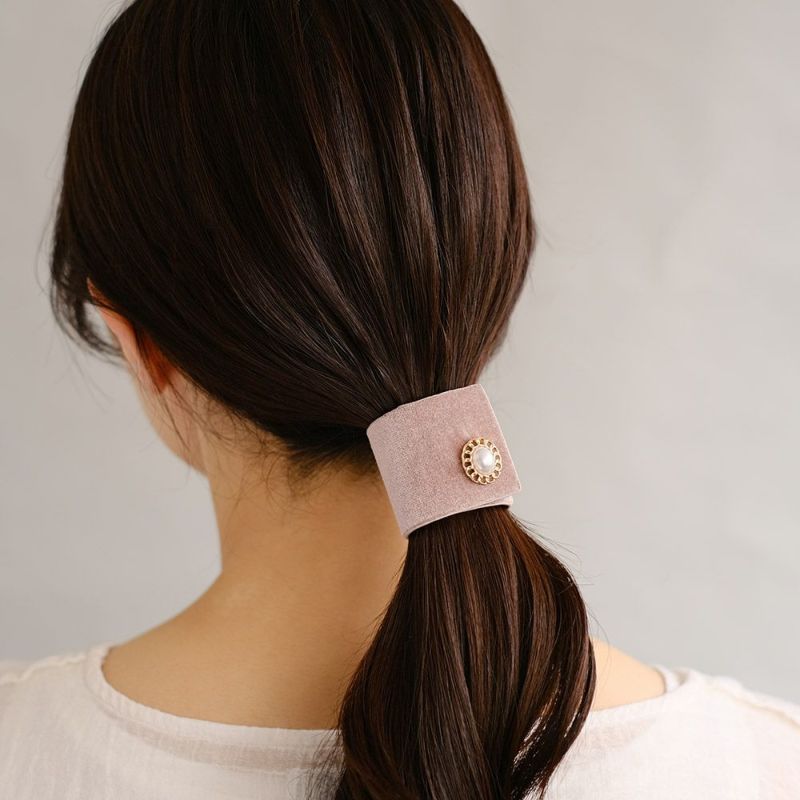 ベロア風の光沢感が大人なマグネットカフで、いつものポニーテールにきちんと感を。スタイリングの差し色にもぴったりなアイテム。