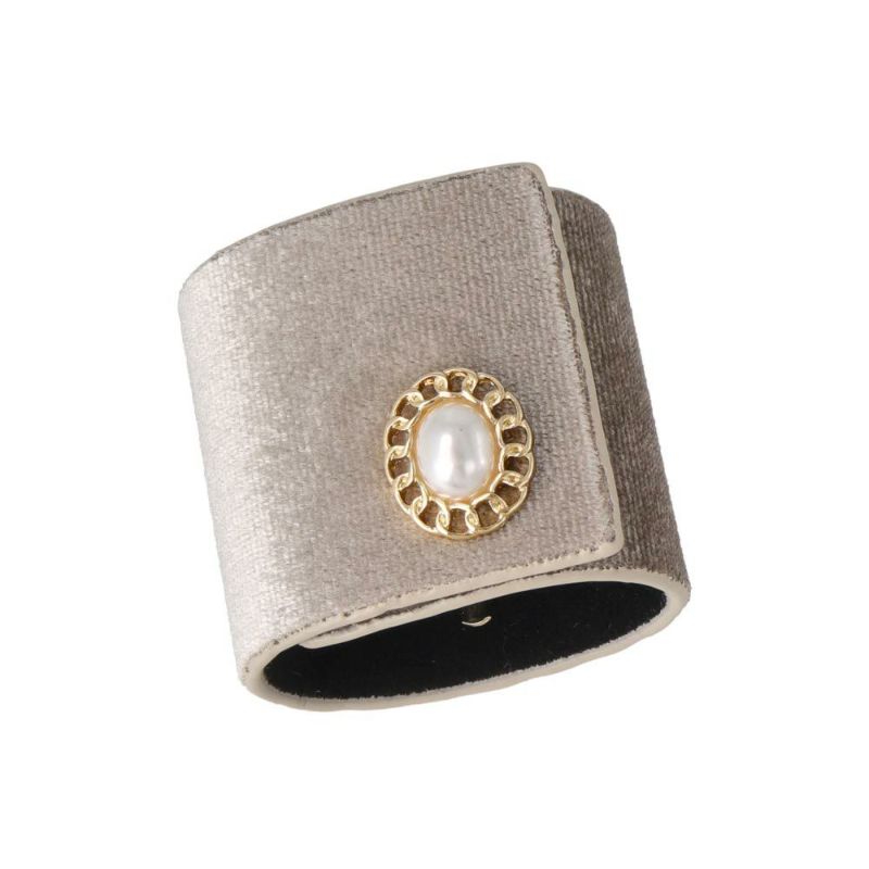 ヘアカフ ベロア風 メタル チェーン オーバル パール ロールポニー マグネットカフ