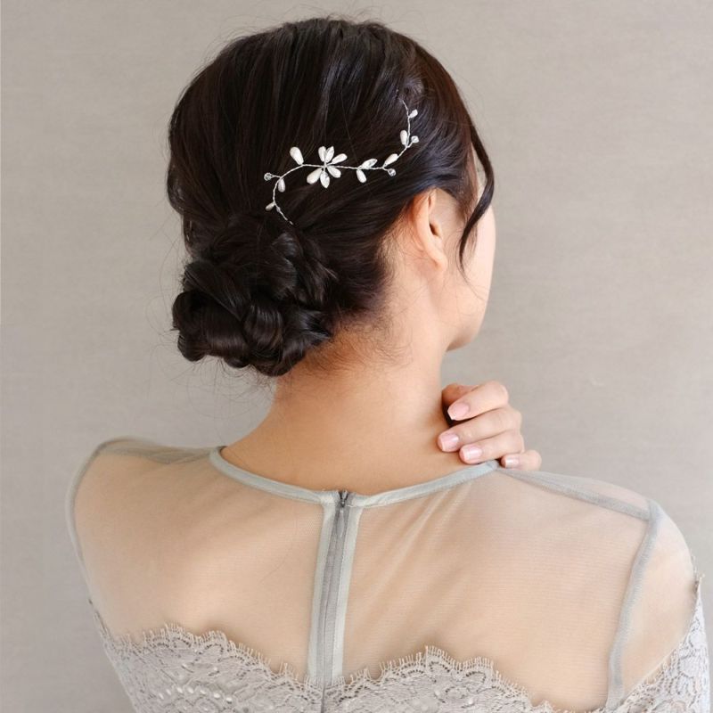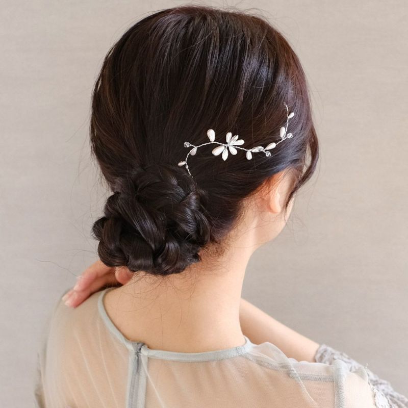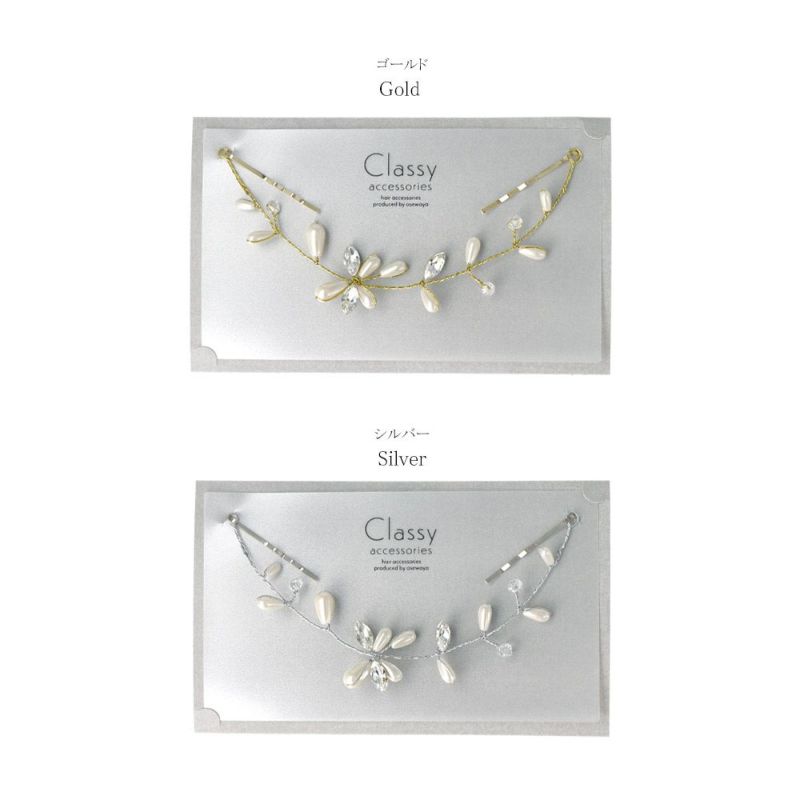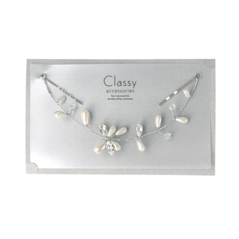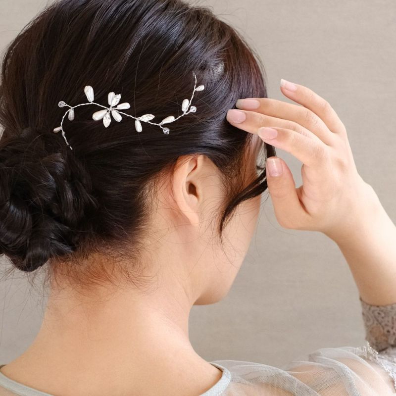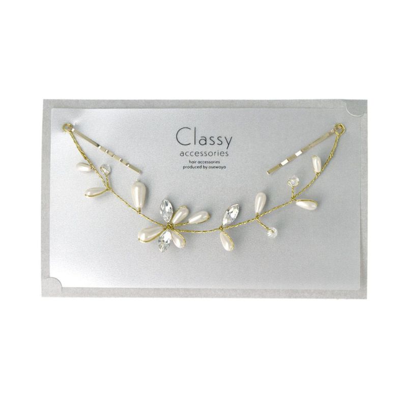 Classy ヘッドドレス メタル ドロップ パール アーモンド ビジュー クリア ビーズ ワイヤー ヘアピン