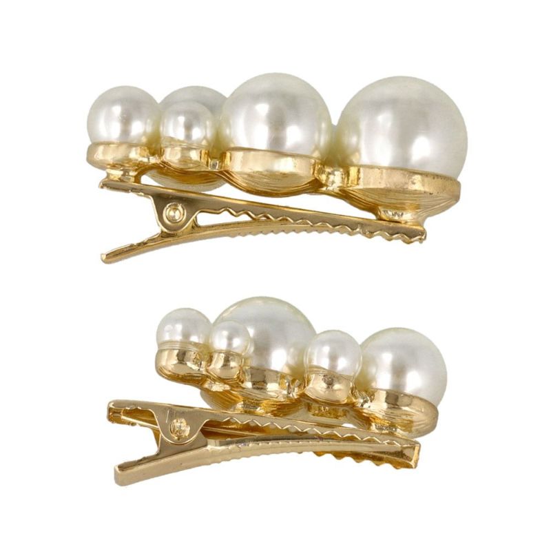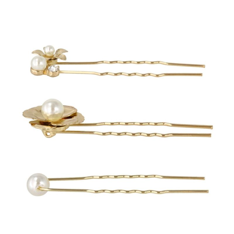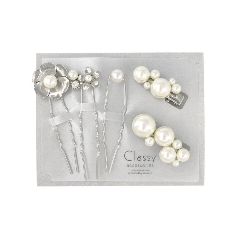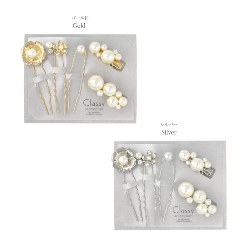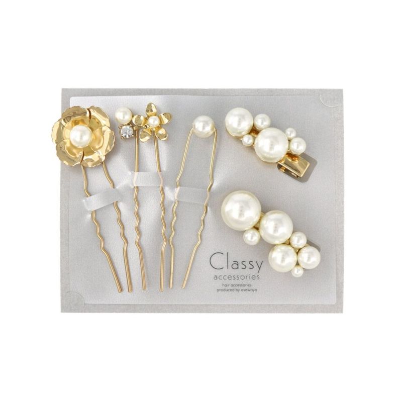 Classy ヘアピン ヘアクリップ ニッケルフリー フラワー メタル パール ストーン 5個セット Uピン