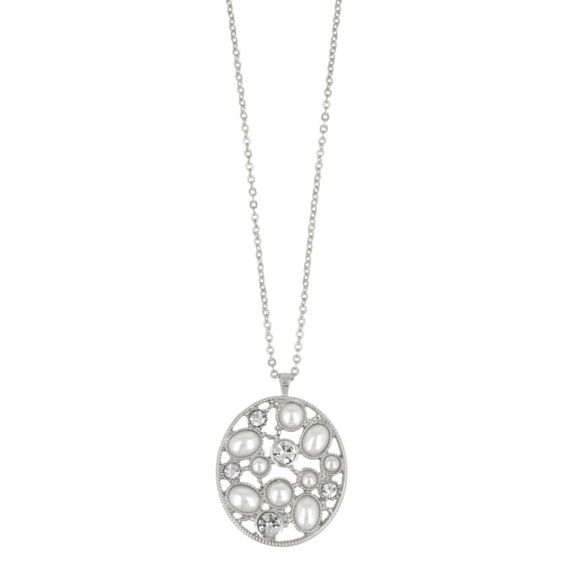 ネックレス ニッケルフリー メタル パール ストーン 透かし オーバル チェーン ペンダントネックレス