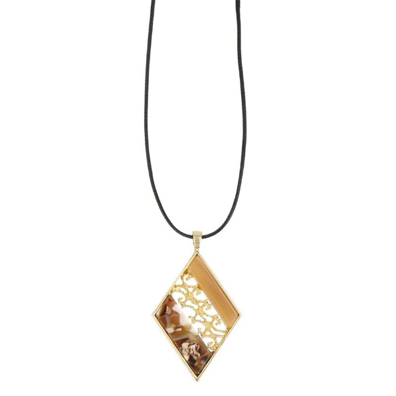 ネックレス ニッケルフリー メタル ひし形 透かし マーブル バイカラー コード ペンダントネックレス