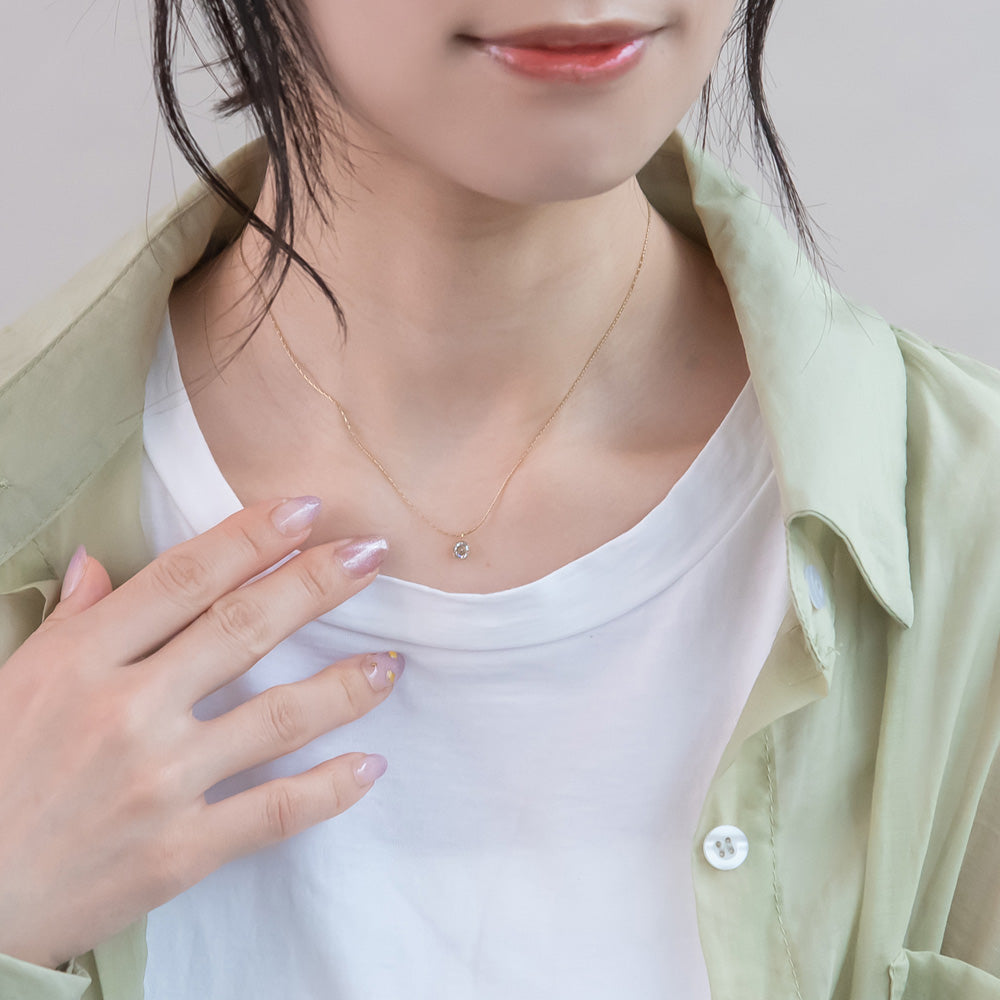 キュービックジルコニアが輝くプチネックレス。肌になじむ華奢なモチーフのネックレスは、気取らずにつけておしゃれ度の上がるアイテム。他と重ね付け出来るシンプルなデザインで、オケージョンを選ばずお使いいただけます。
