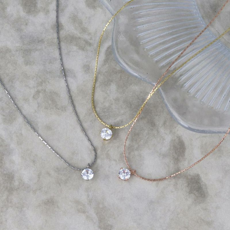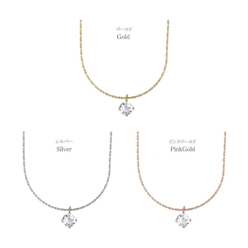 ネックレス ステンレス キュービックジルコニア 1粒 4mm チェーン プチネックレス