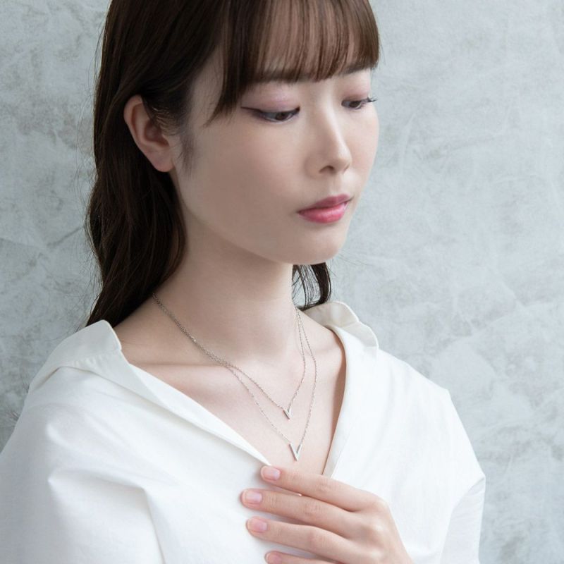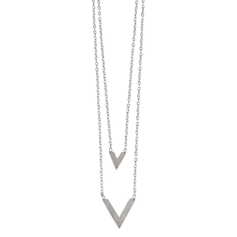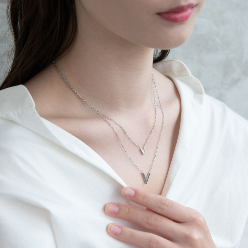 ネックレス ステンレス ダブル V字 アズキチェーン 2連 プチネックレス