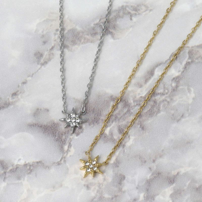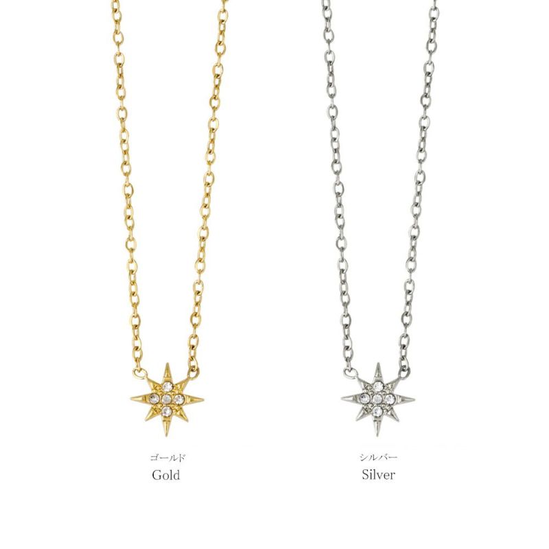 ネックレス ステンレス ストーン スター 星 アズキチェーン プチネックレス