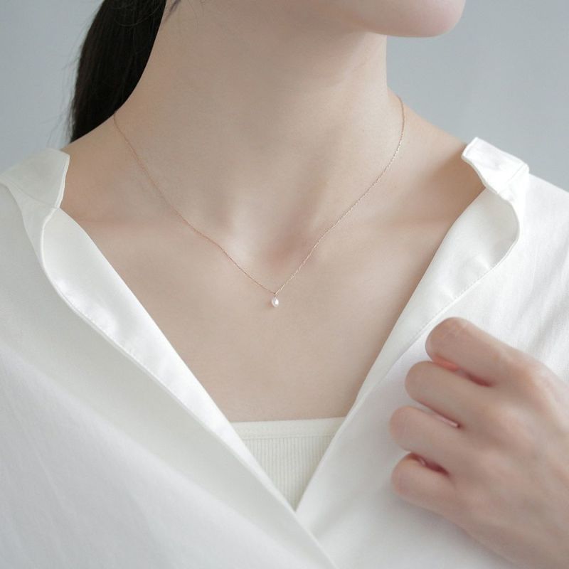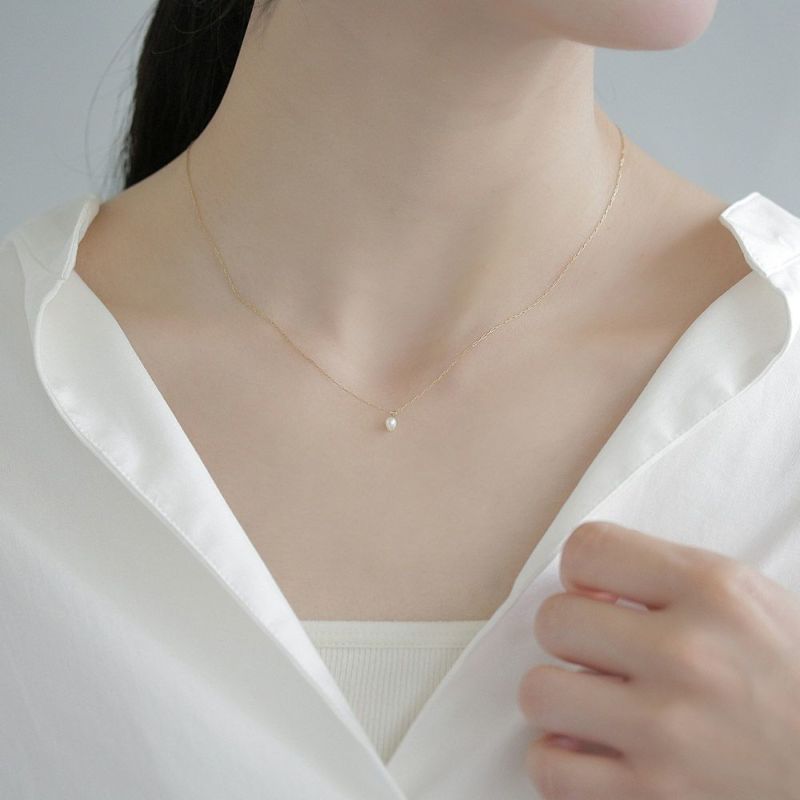 ネックレス ステンレス メタル 淡水パール ミニ 1粒 超極細 チェーン マグネット プチネックレス