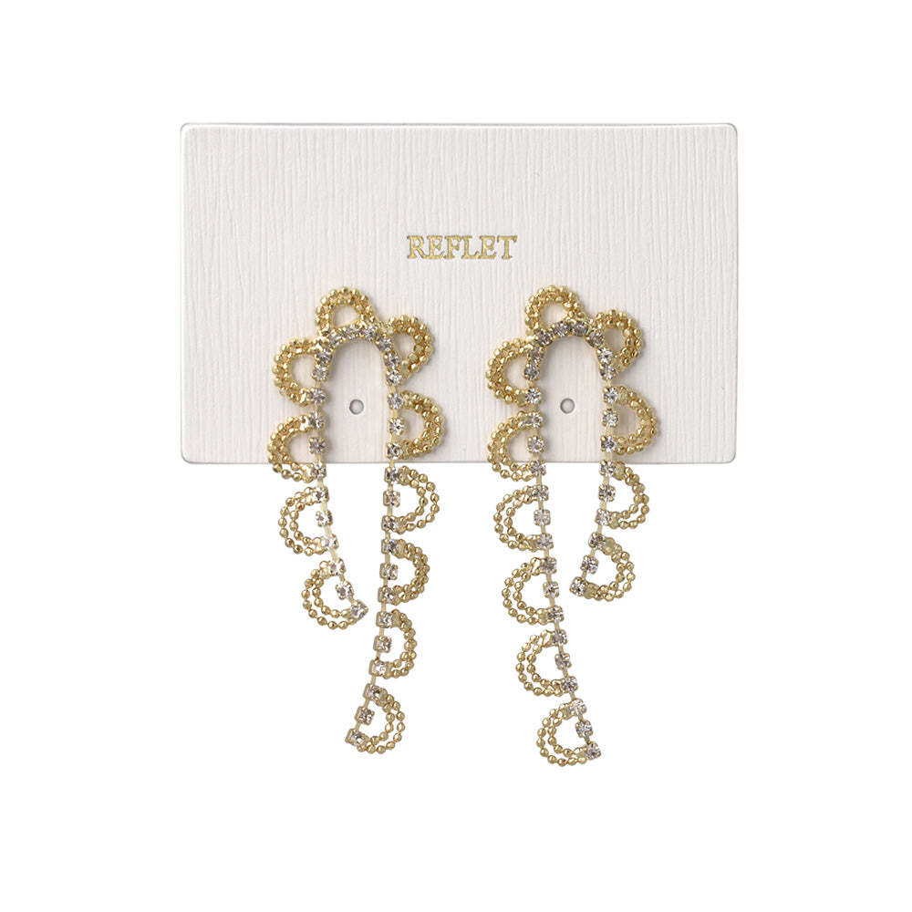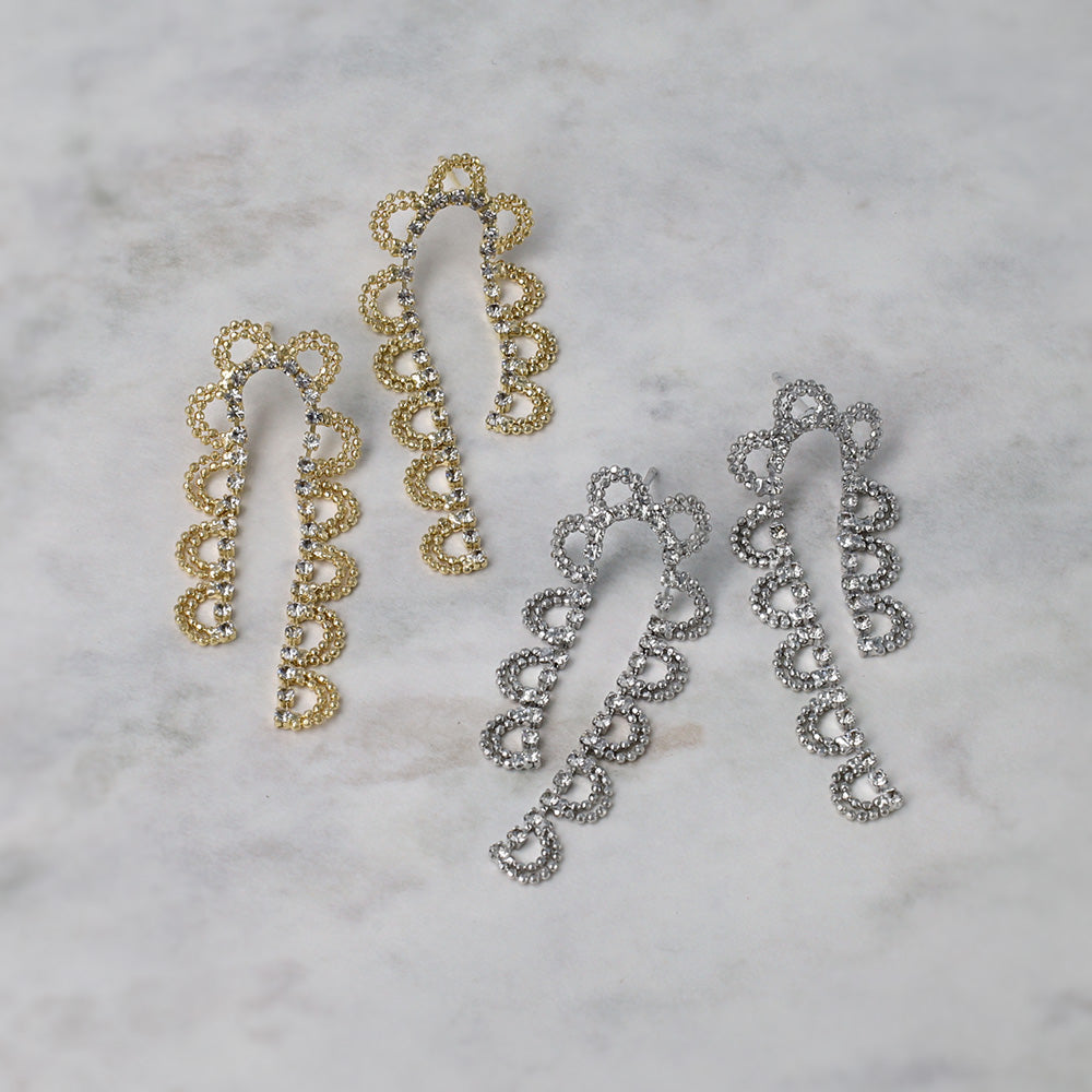 ゆらーんとしたシルエットがかわいい。メタル素材で甘くなりすぎず上品に仕上がるゆれ感が美しいピアスは、華やかなレース風デザイン。