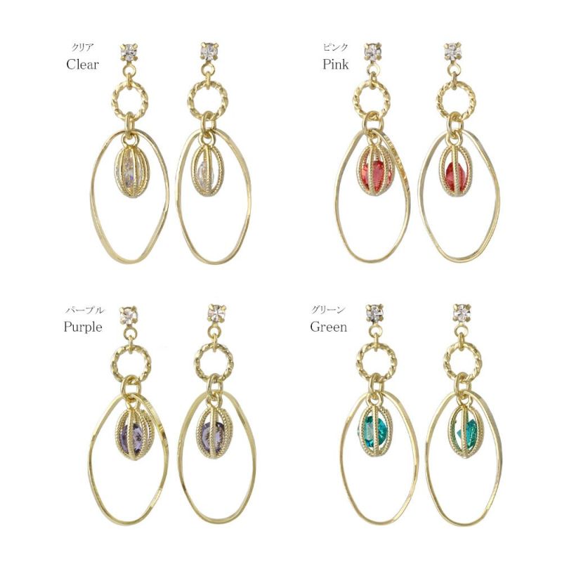 ピアス ニッケルフリー メタル リング ツイスト 立体フレーム オーバル カラー ストーン チタンポスト スタッドピアス