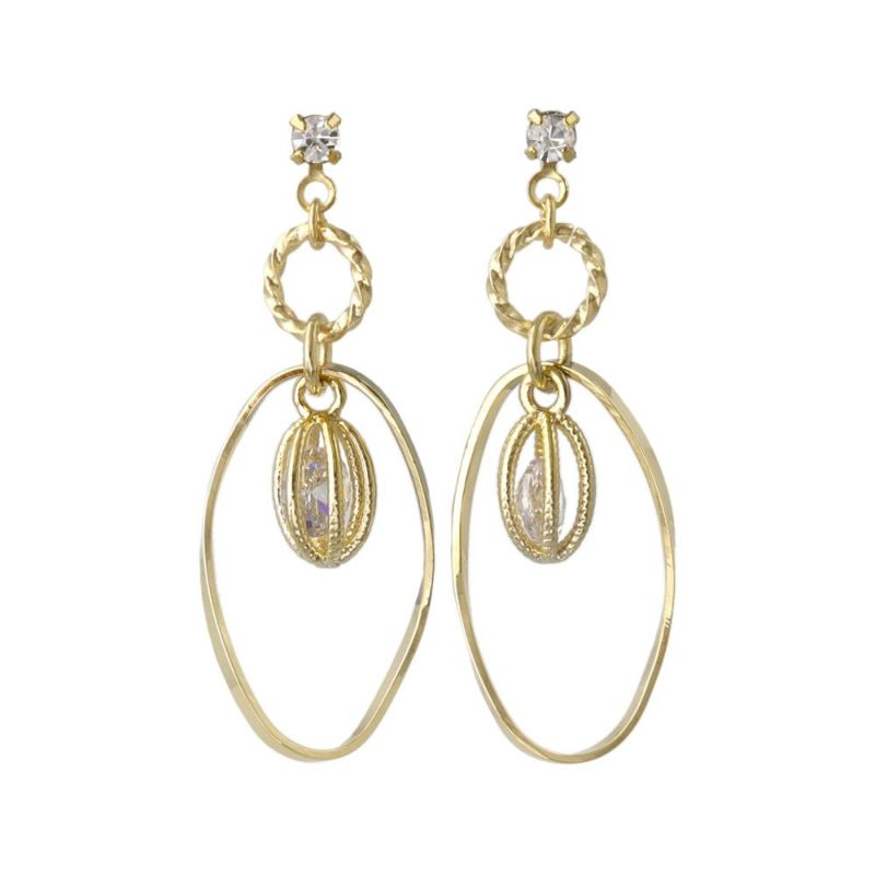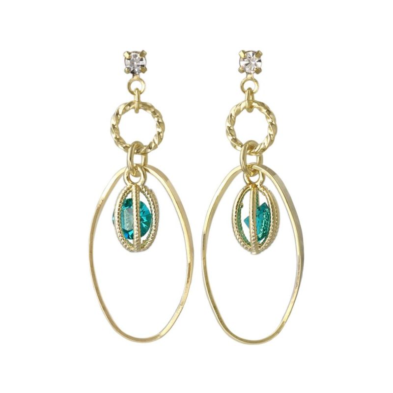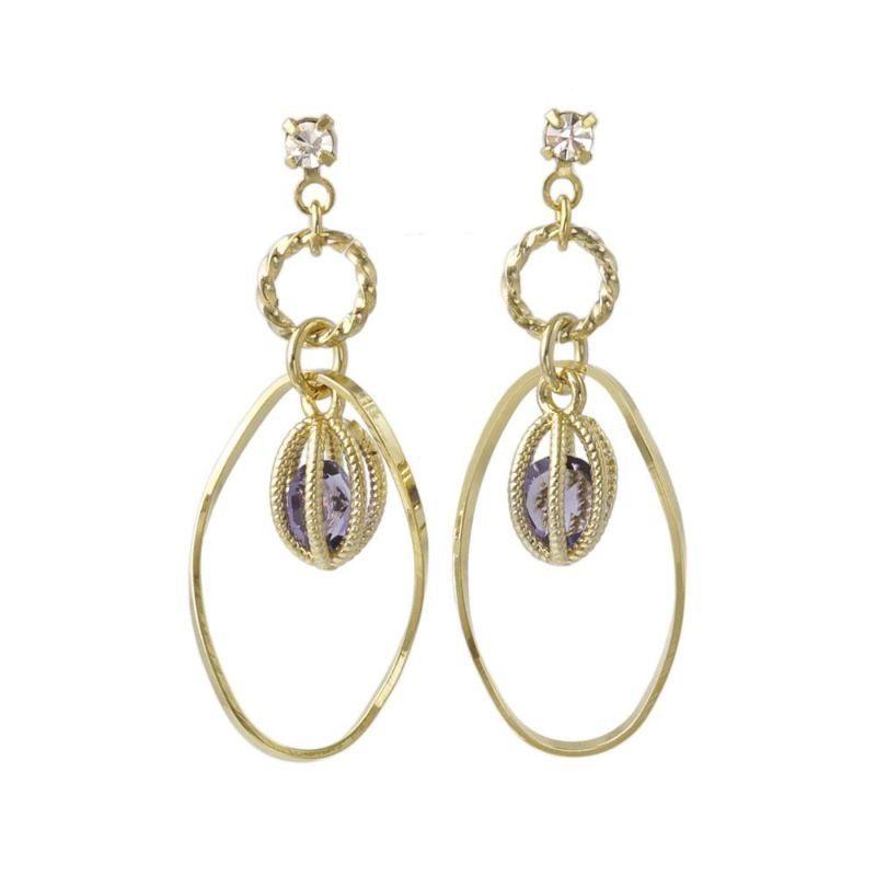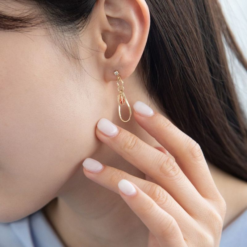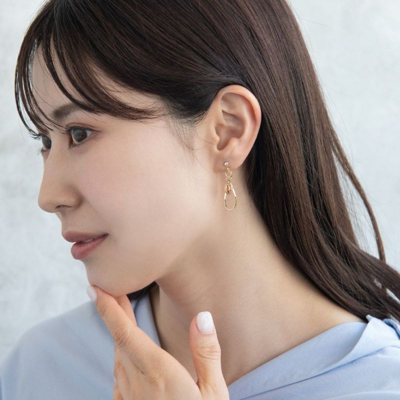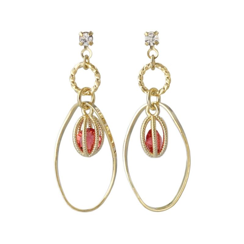 pc1794”ゆれる”の動作が美しさをつくりだす、洒落たバランス感のアクセサリー。立体感のあるフォルムにきらりと輝く色のワンポイントがコーデの質を上げる、きれいめピアス。