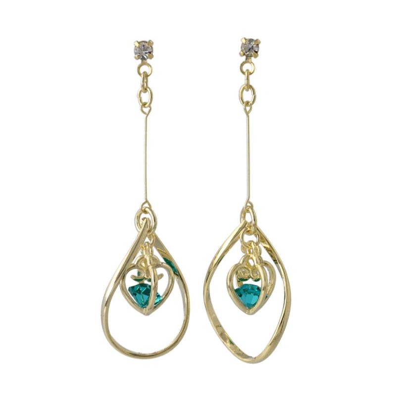 ピアス ニッケルフリー メタル ツイスト ドロップ 立体フレーム ハート カラー ストーン ワイヤー チタンポスト スタッドピアス