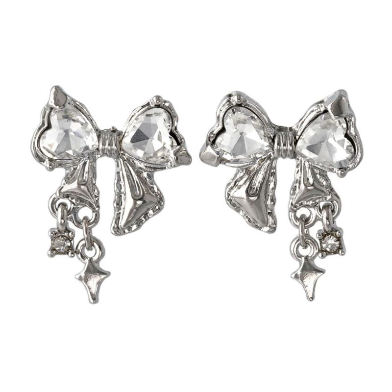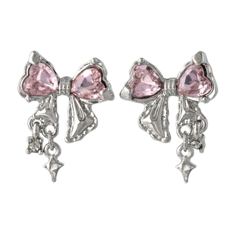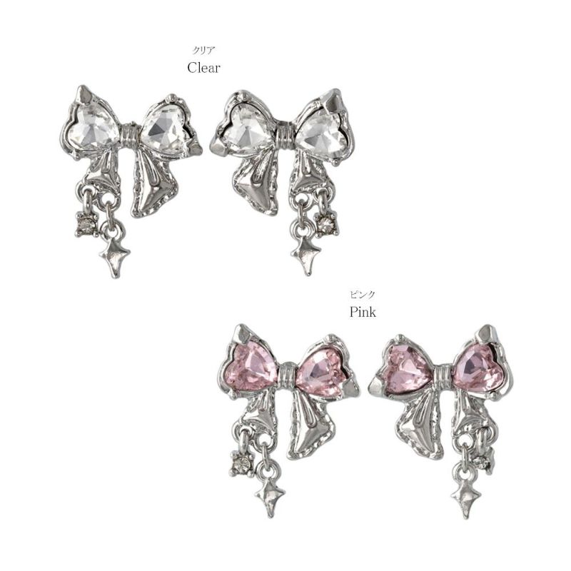ピアス yura ニッケルフリー メタル リボン ハート ストーン チタンポスト スタッドピアス