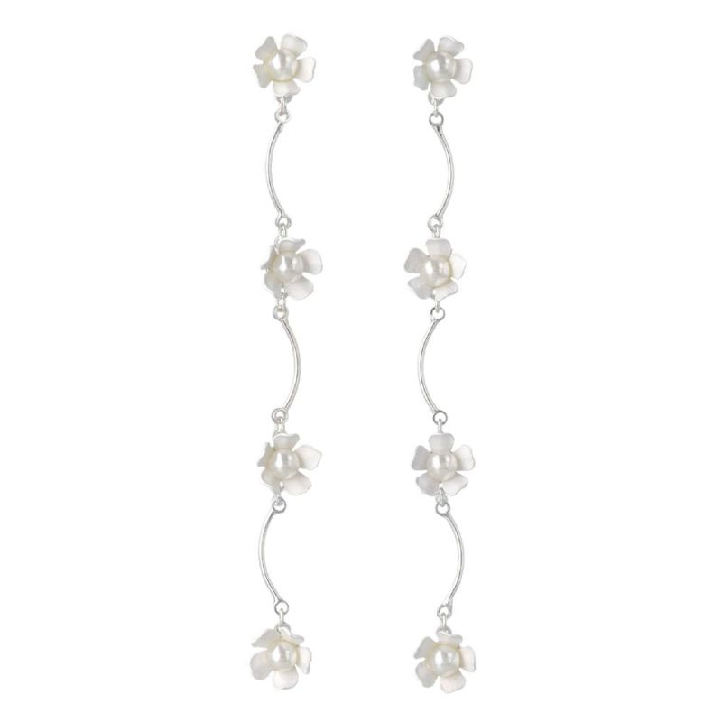 pc1800とことん甘く、かわいく、洒落たバランス感のちいさなお花がゆれるロングピアス。
