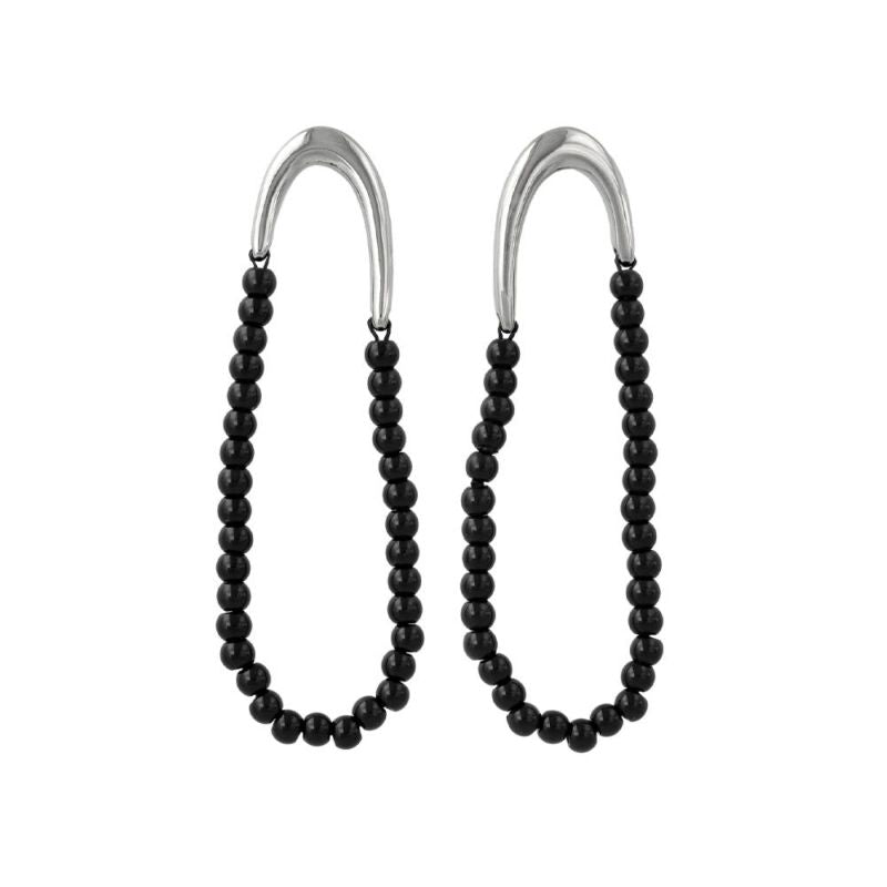 pc1801メタルxビーズの組み合わせがおしゃれな揺れてきらめくシルエットのデザインピアス。程よいボリューム感でコーディネイトのアクセントにピッタリです。