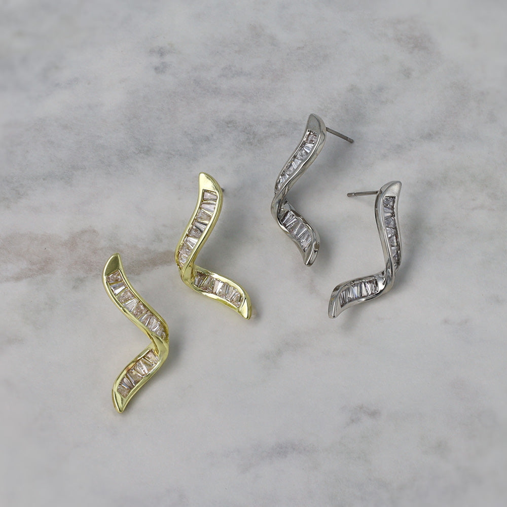 ピアス ニッケルフリー メタル キュービックジルコニア ウェーブ ライン ステンレスポスト スタッドピアス