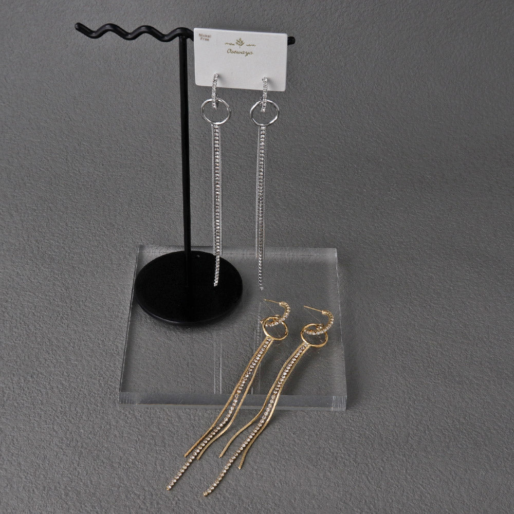 ピアス ニッケルフリー メタル ロング ミニ ストーン チェーン カーブ リング ステンレスポスト スタッドピアス