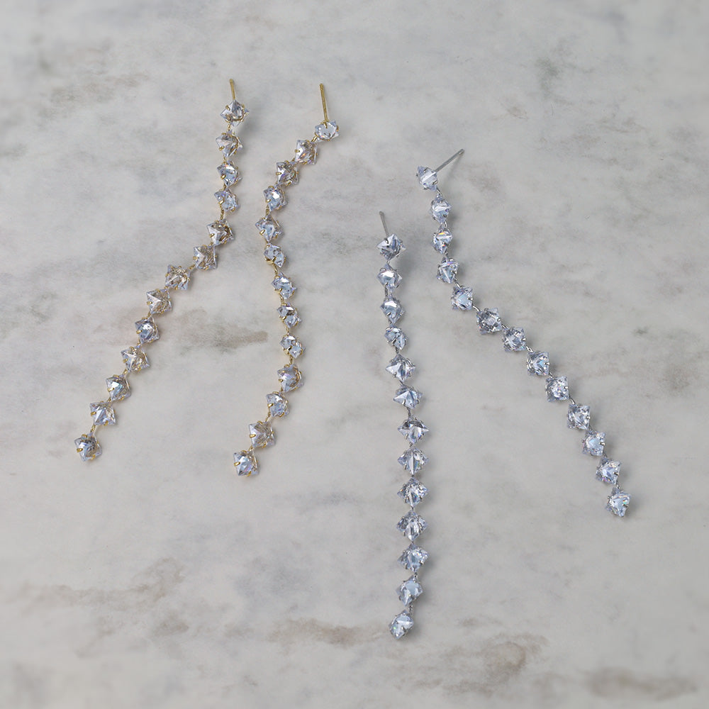シルエットにひとクセあり、それは大人なスタイリングにちょうどよいバランス。キュービックジルコニアが品のある輝きを放ち、耳元に華やかさをプラスしてくれます。