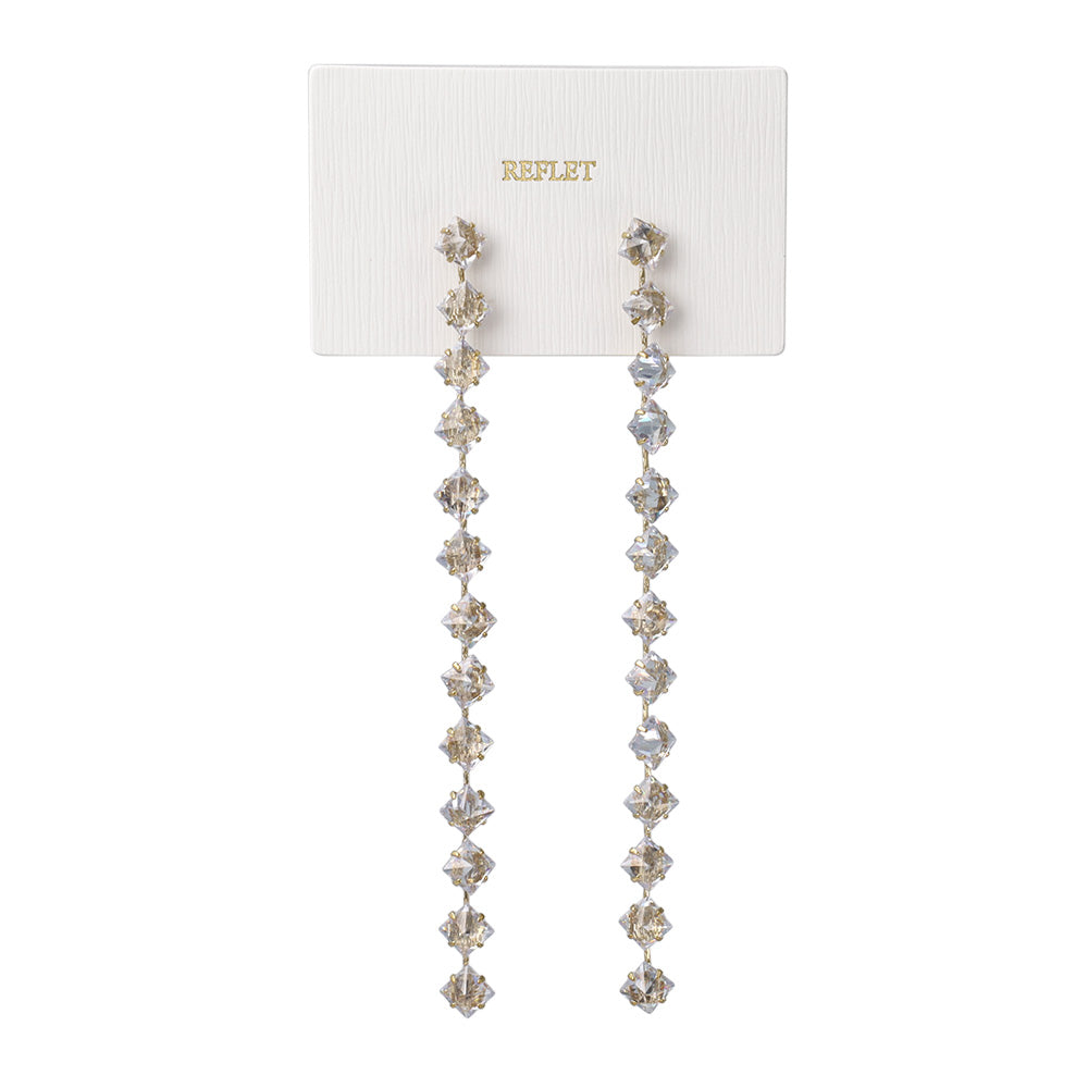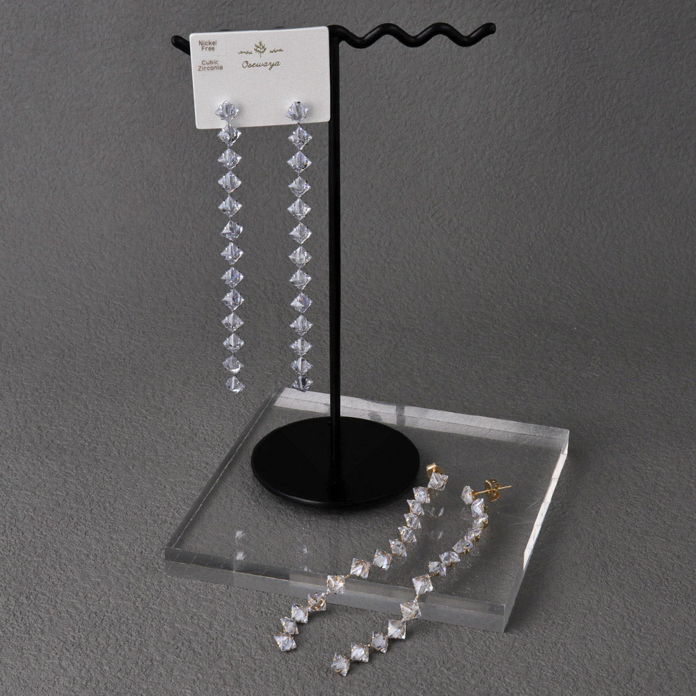 ピアス ニッケルフリー メタル キュービックジルコニア スクエア チェーン ロング ステンレスポスト スタッドピアス