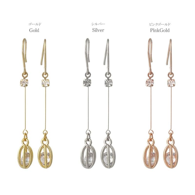 ピアス ニッケルフリー メタル 立体フレーム オーバル ストーン ワイヤー フックピアス