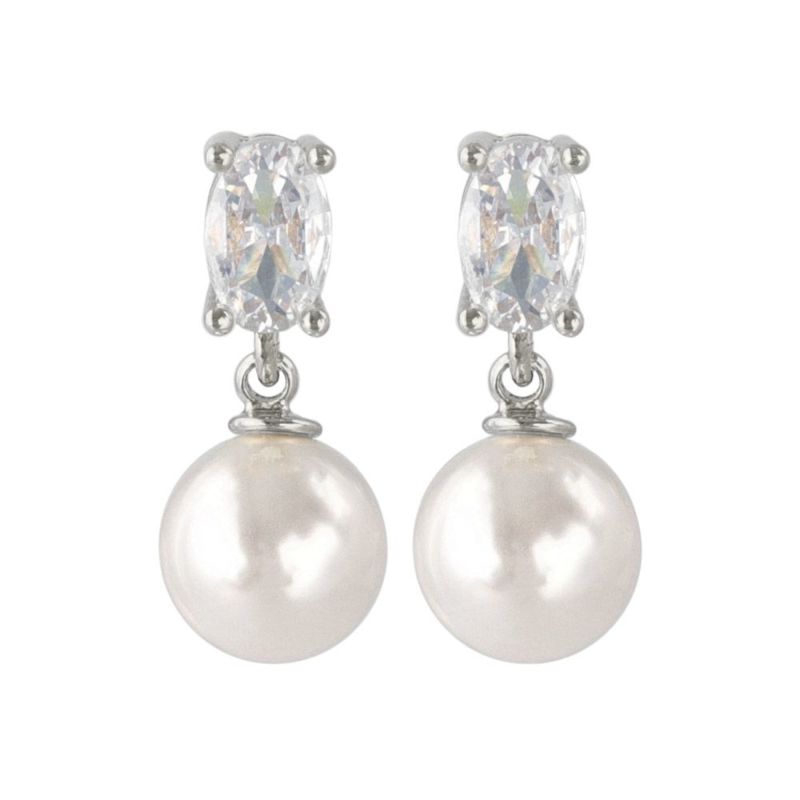 ピアス ニッケルフリー キュービックジルコニア メタル ストーン オーバル パール チタンポスト スタッドピアス