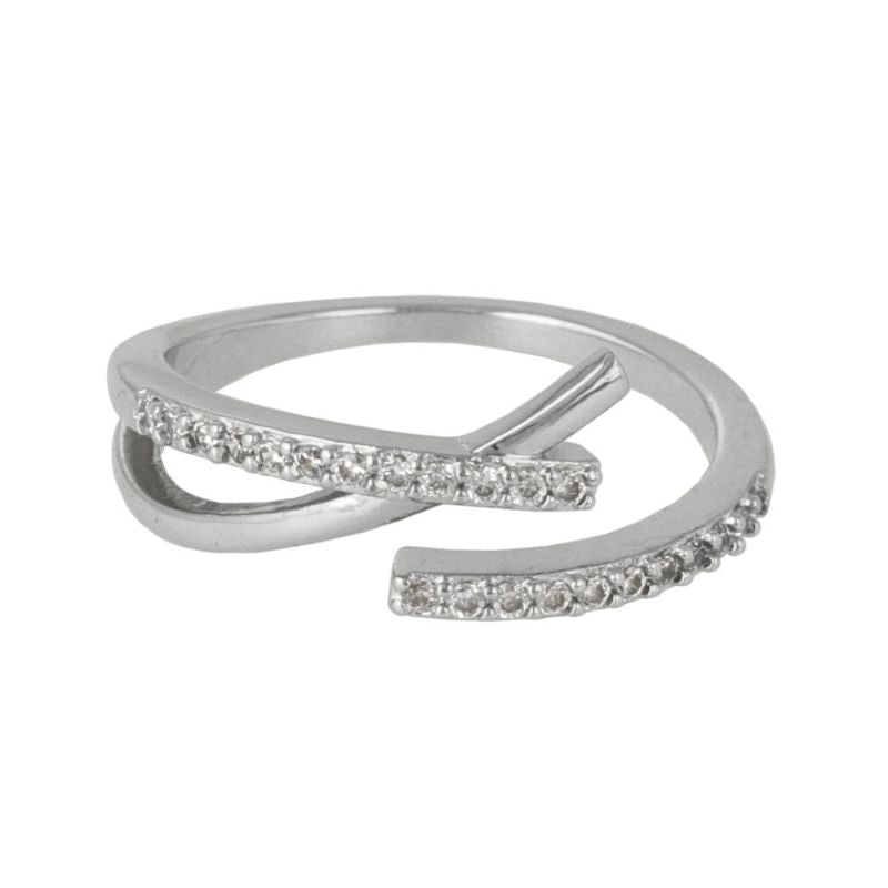 リング ニッケルフリー メタル キュービックジルコニア クロス ライン フリーサイズ 指輪