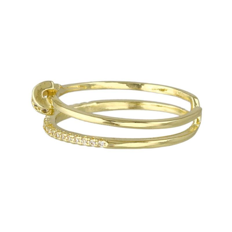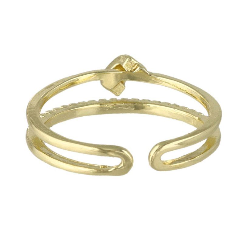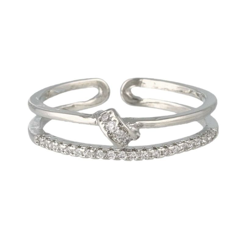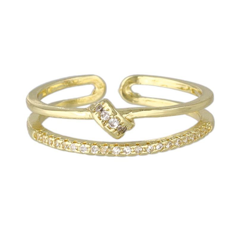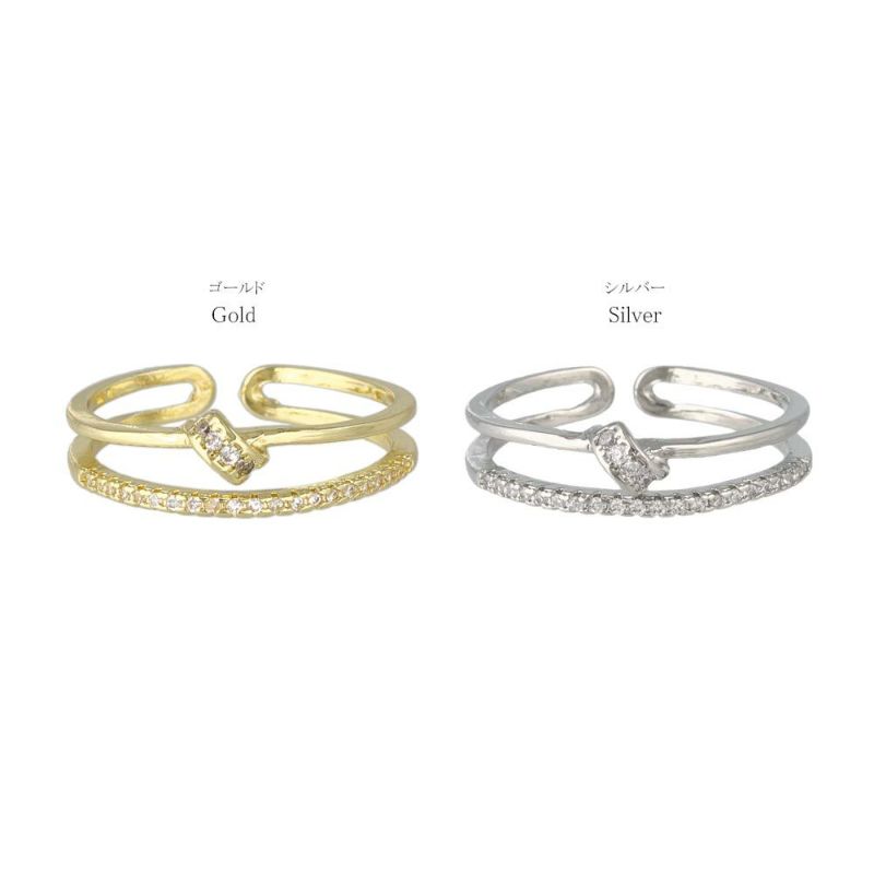 リング ニッケルフリー メタル ミニ キュービックジルコニア 2連風 フリーサイズ 指輪