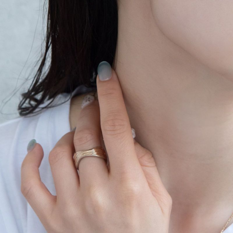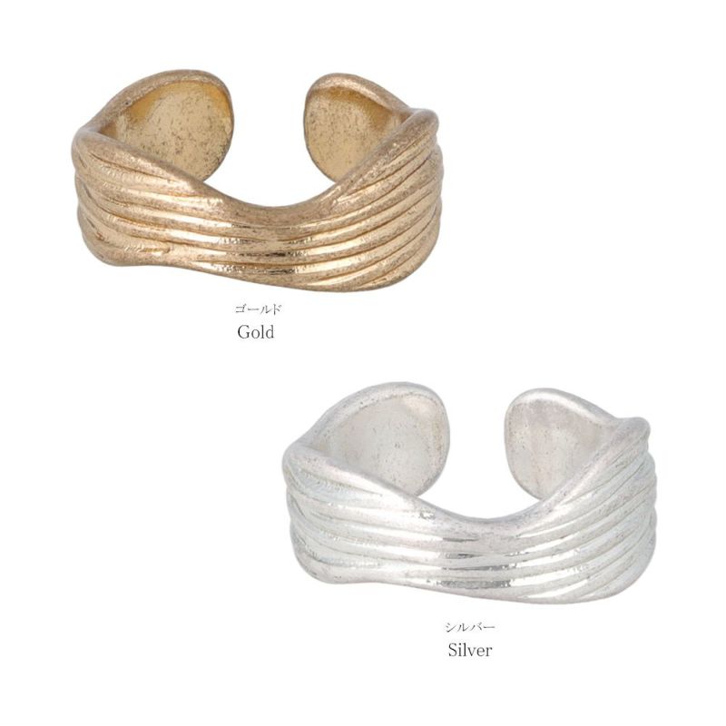 リング ripple ニッケルフリー メタル ウェーブ ライン ワイド フリーサイズ 指輪