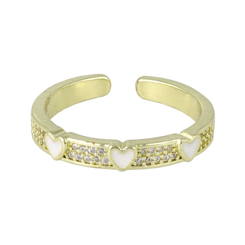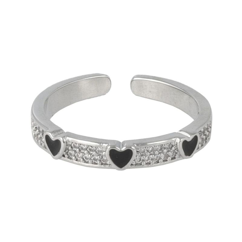 リング ニッケルフリー メタル キュービックジルコニア トリプル ハート モノトーンカラー フリーサイズ 指輪