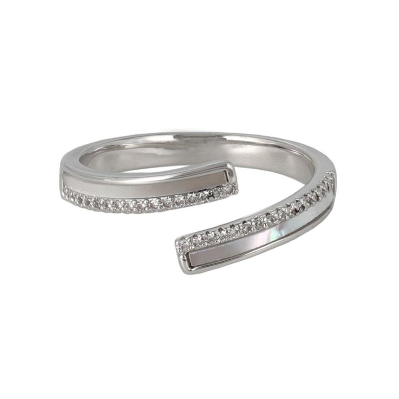 rg0595シェルとキュービックジルコニアが上品に輝くデザインリング。