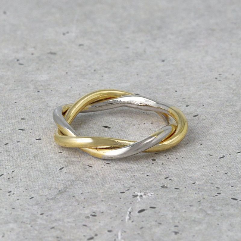 リング ニッケルフリー メタル ゴールド×シルバー コンビカラー クロス ツイスト 13号 指輪