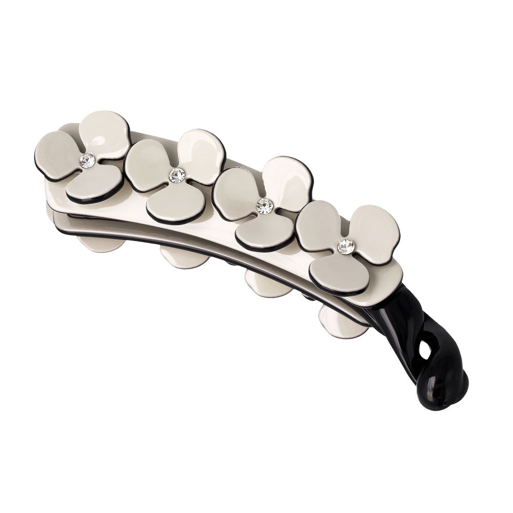 バナナクリップ ヘアクリップ 立体 フラワー ストーン バイカラー