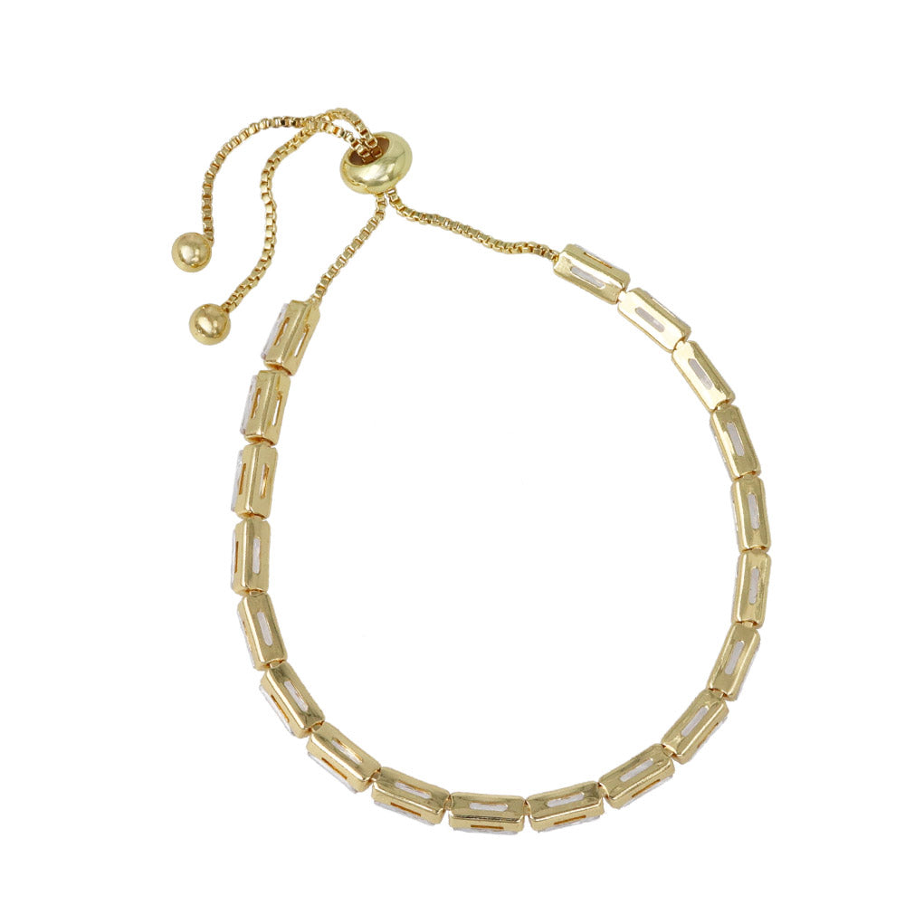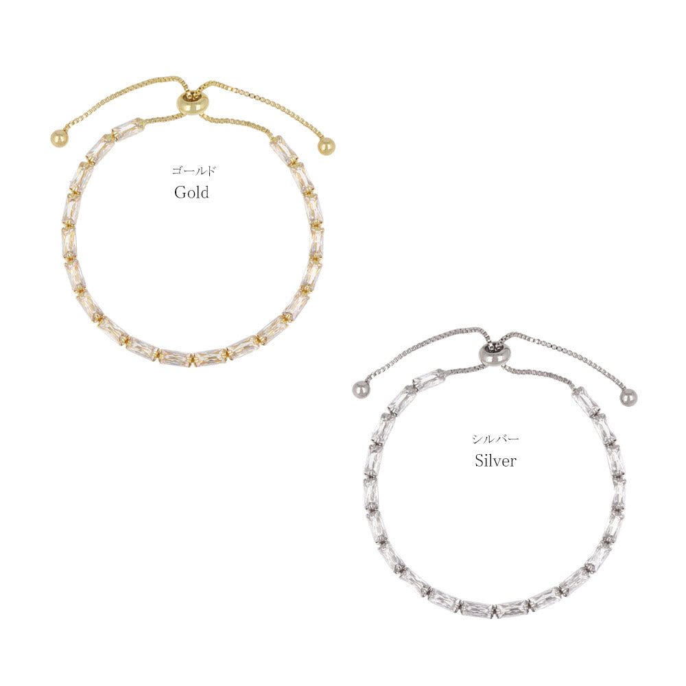 ブレスレット ニッケルフリー メタル キュービックジルコニア レクタングル スライドボール ベネチアン チェーンブレスレット