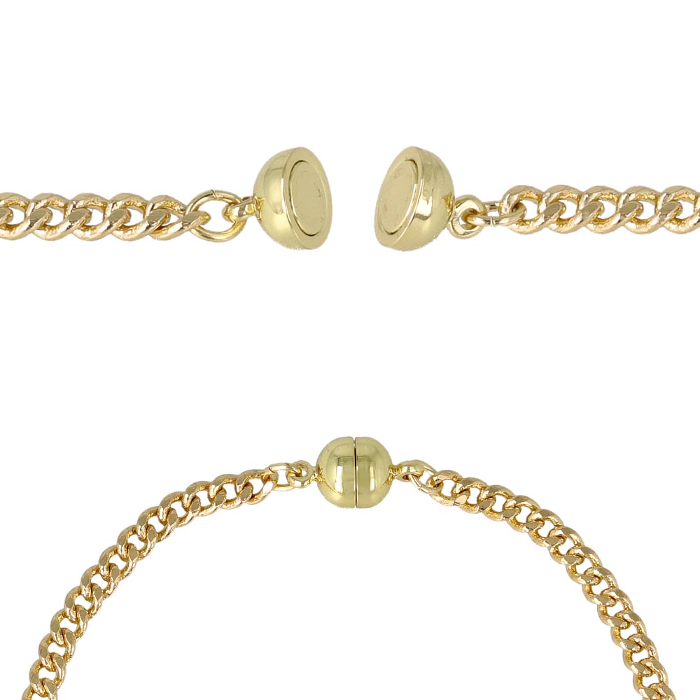 bl0595マグネット同士を近づけるだけ、磁石の留め具でラクにつけられるブレスレット。ひっかけるタイプの留め具が苦手な方や、ネイルアートをしている方にもおすすめです。機能性だけでなく、ファッションのポイントになるデザインも◎