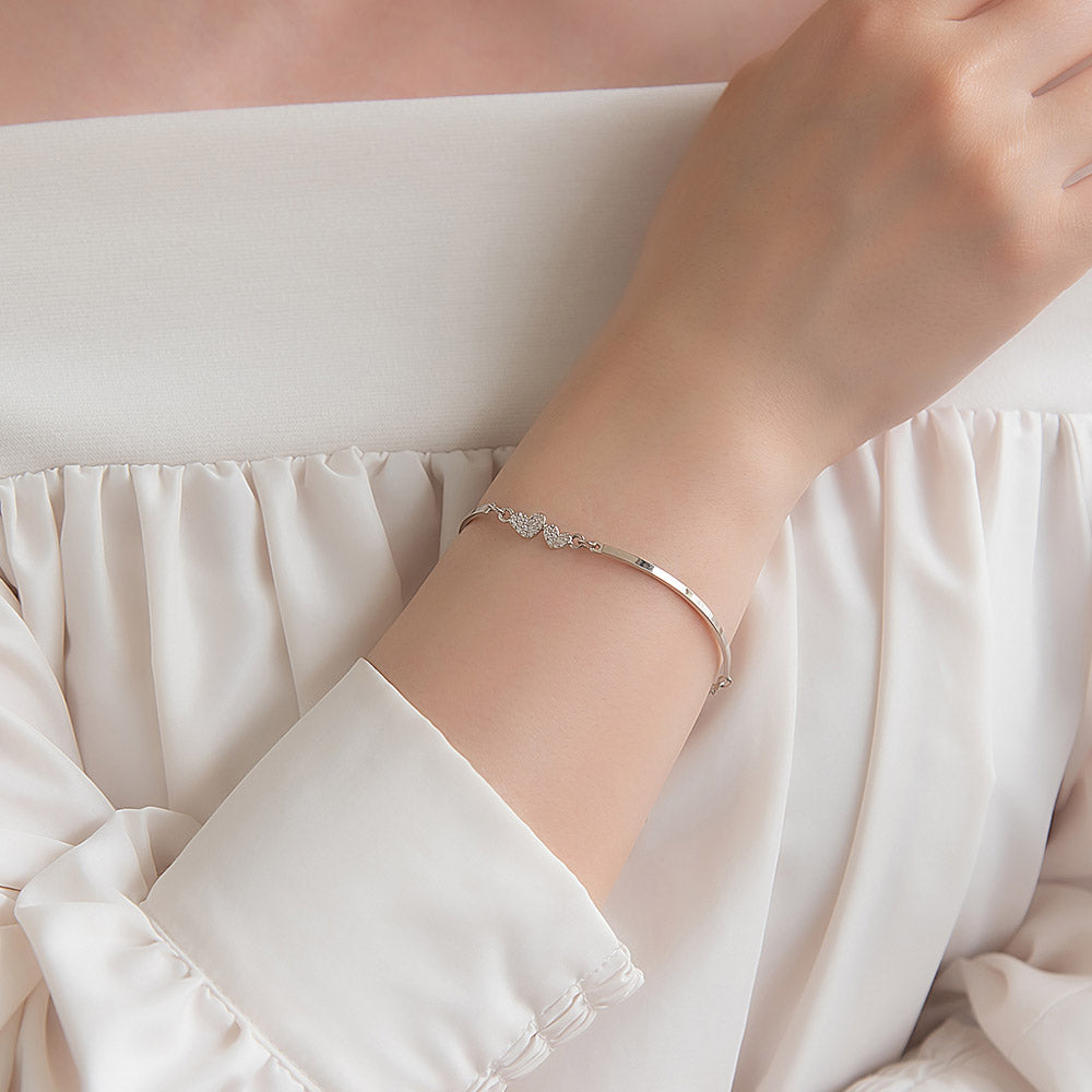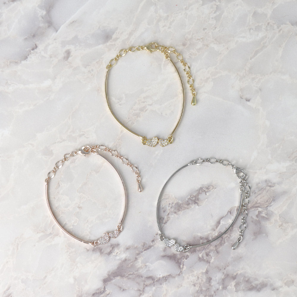 ブレスレット ニッケルフリー メタル キュービックジルコニア ミニ ダブル ハート カーブ バー チェーンブレスレット