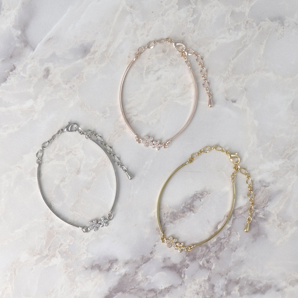 ブレスレット ニッケルフリー メタル キュービックジルコニア ミニ ダブル フラワー カーブ バー チェーンブレスレット