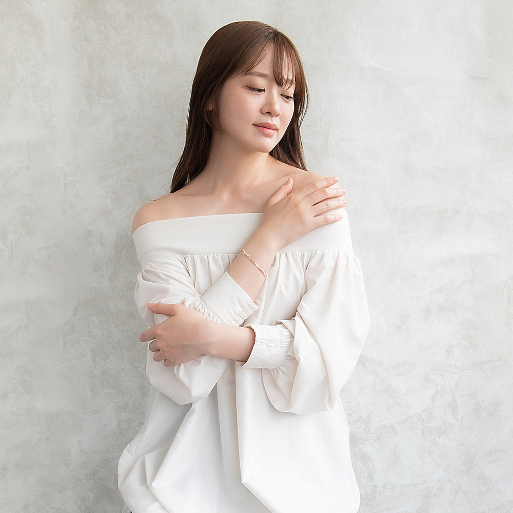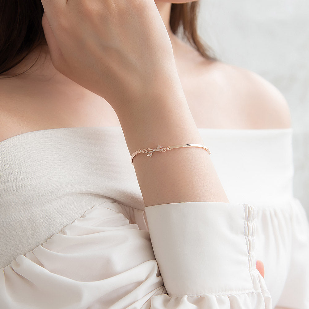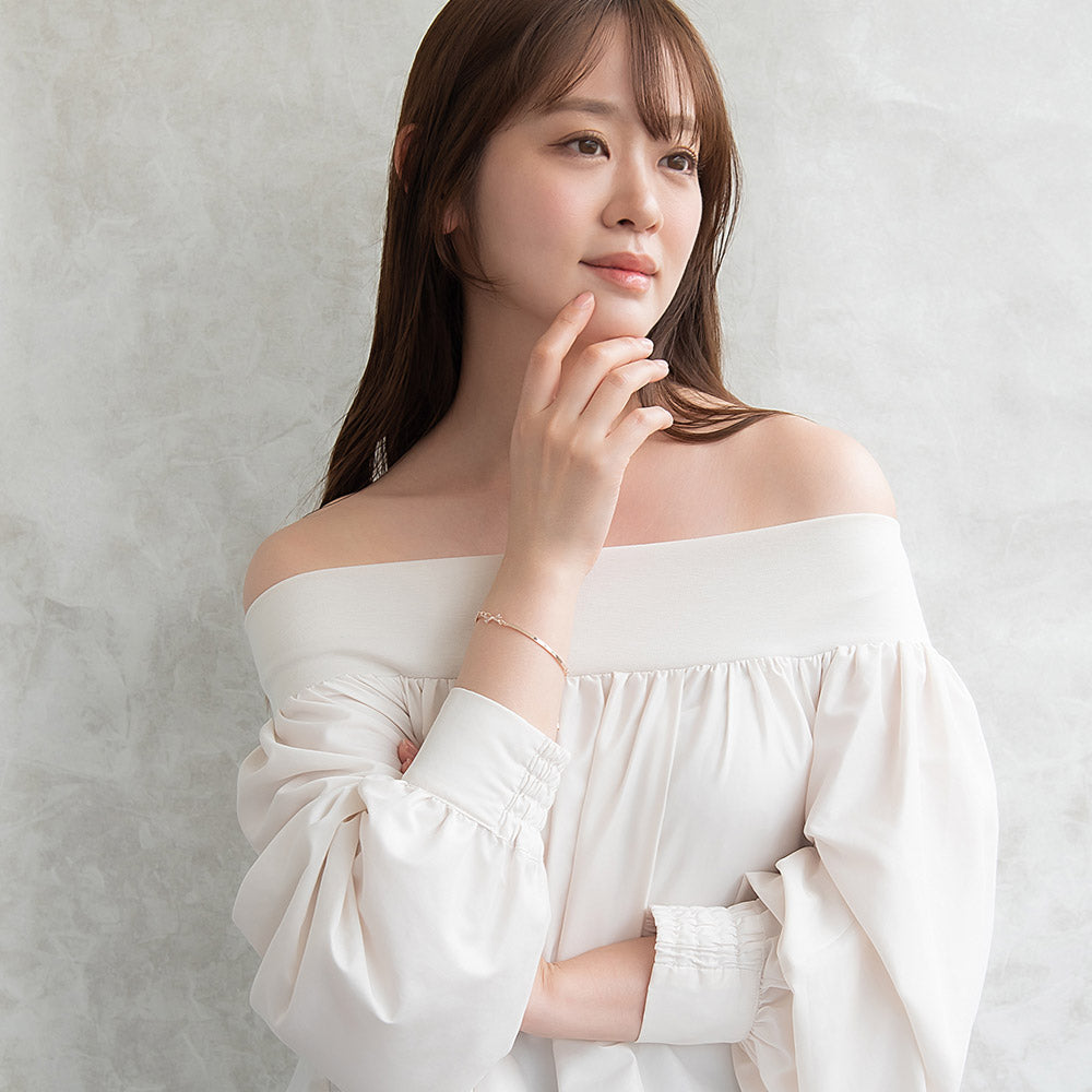 bl0604肌になじむ華奢なモチーフのブレスレットは、気取らずにつけておしゃれ度の上がるアイテム。ふと手元が目に入ったとき、テンションのあがるキレイめデザイン。キュービックジルコニアが上品に煌めき、華奢ながら存在感もあってコーデ映え。幅広いコーデと好相性。オールシーズン使えるメタルカラーで使い勝手◎