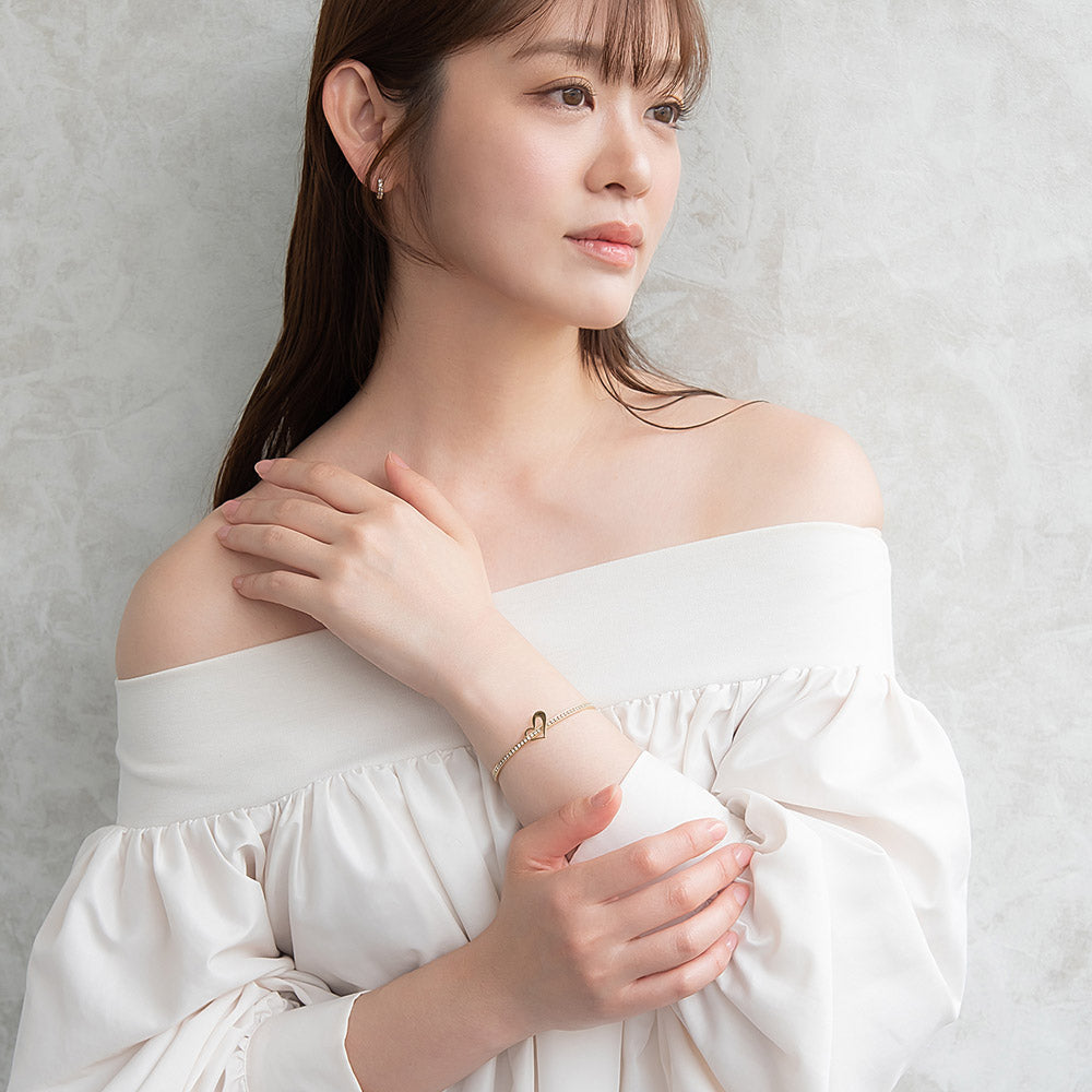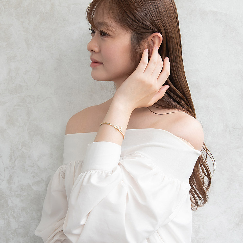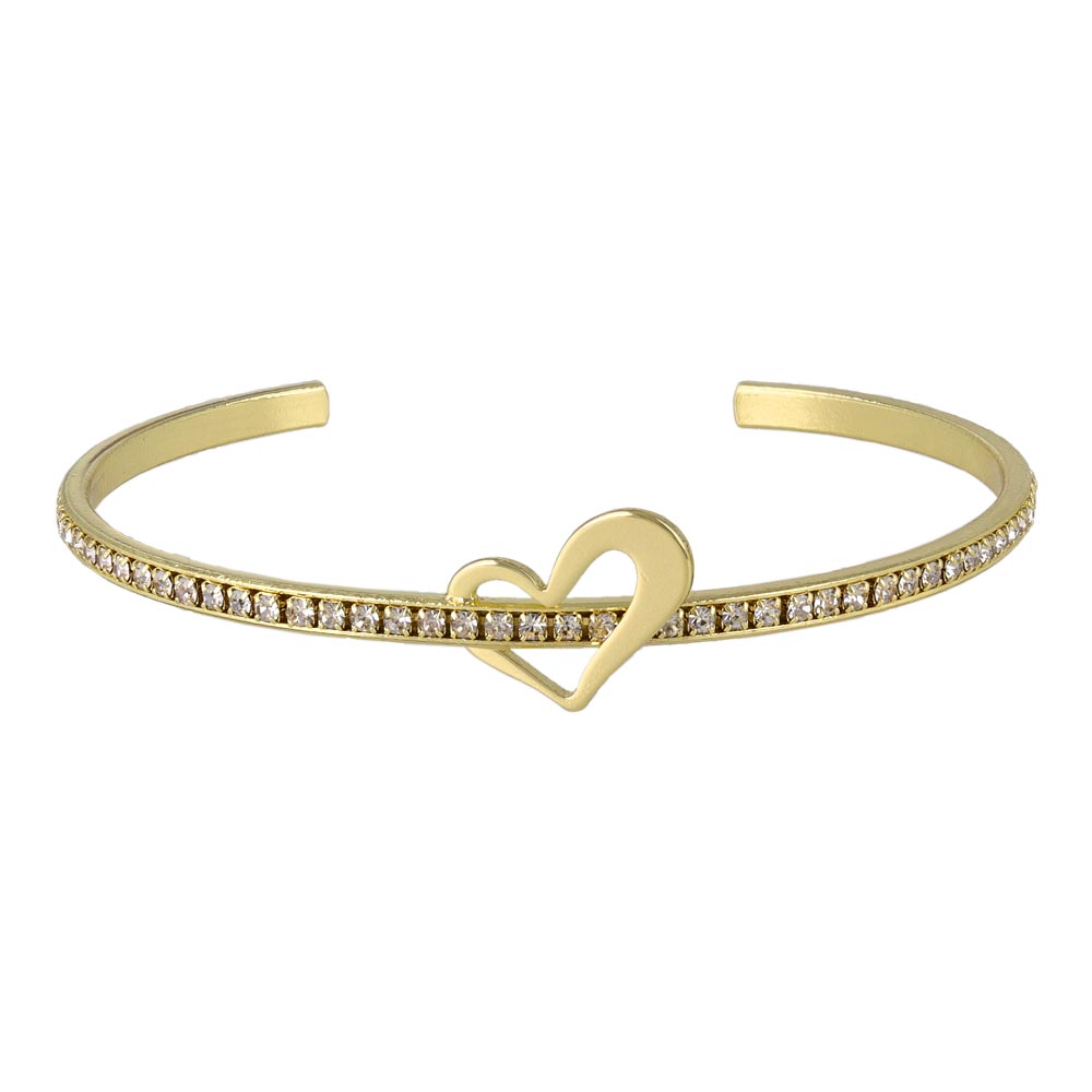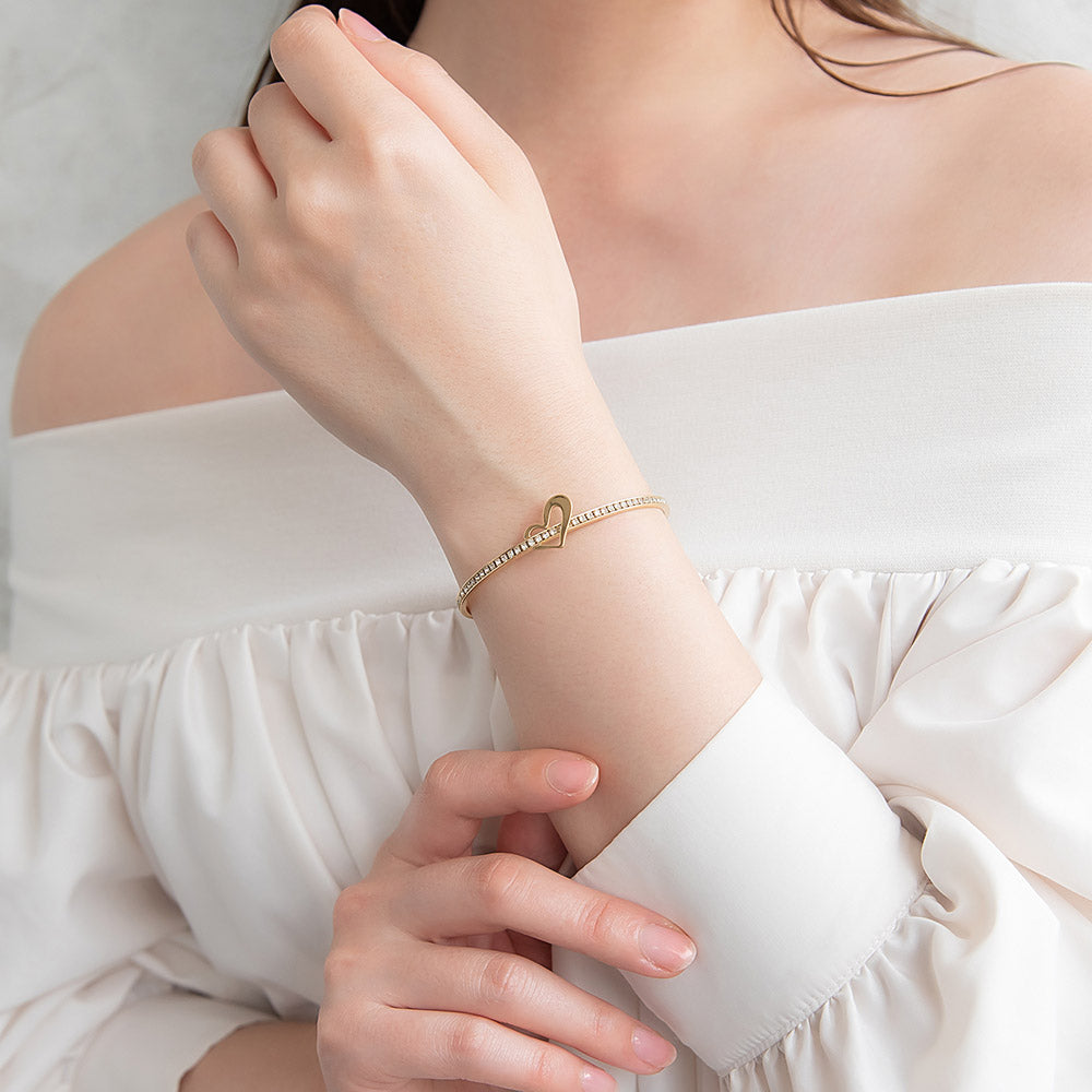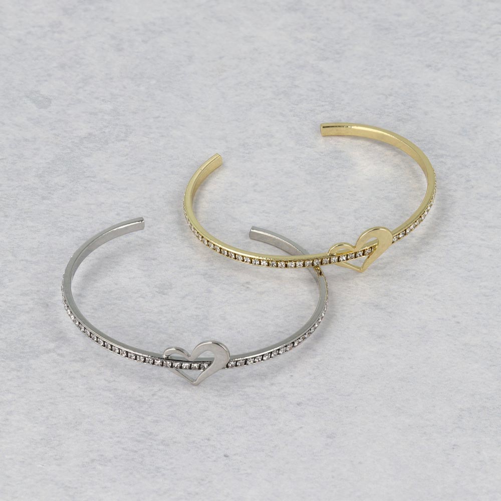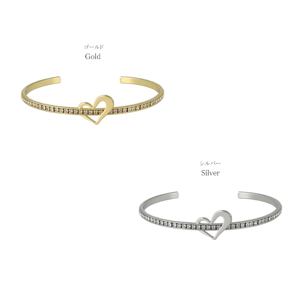 ブレスレット ニッケルフリー メタル ミニ ストーン ライン ハート ハーフバングル