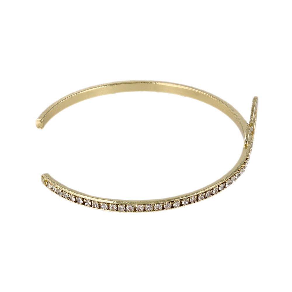 bl0607ちらりと輝くストーンがおしゃれのポイントに。贅沢にあしらわれたストーンで高級感あるデザイン。手元に華やかさを添えるハーフバングル。カジュアルからキレイめまで幅広いコーデと好相性。オールシーズン使えるメタルカラーで使い勝手◎