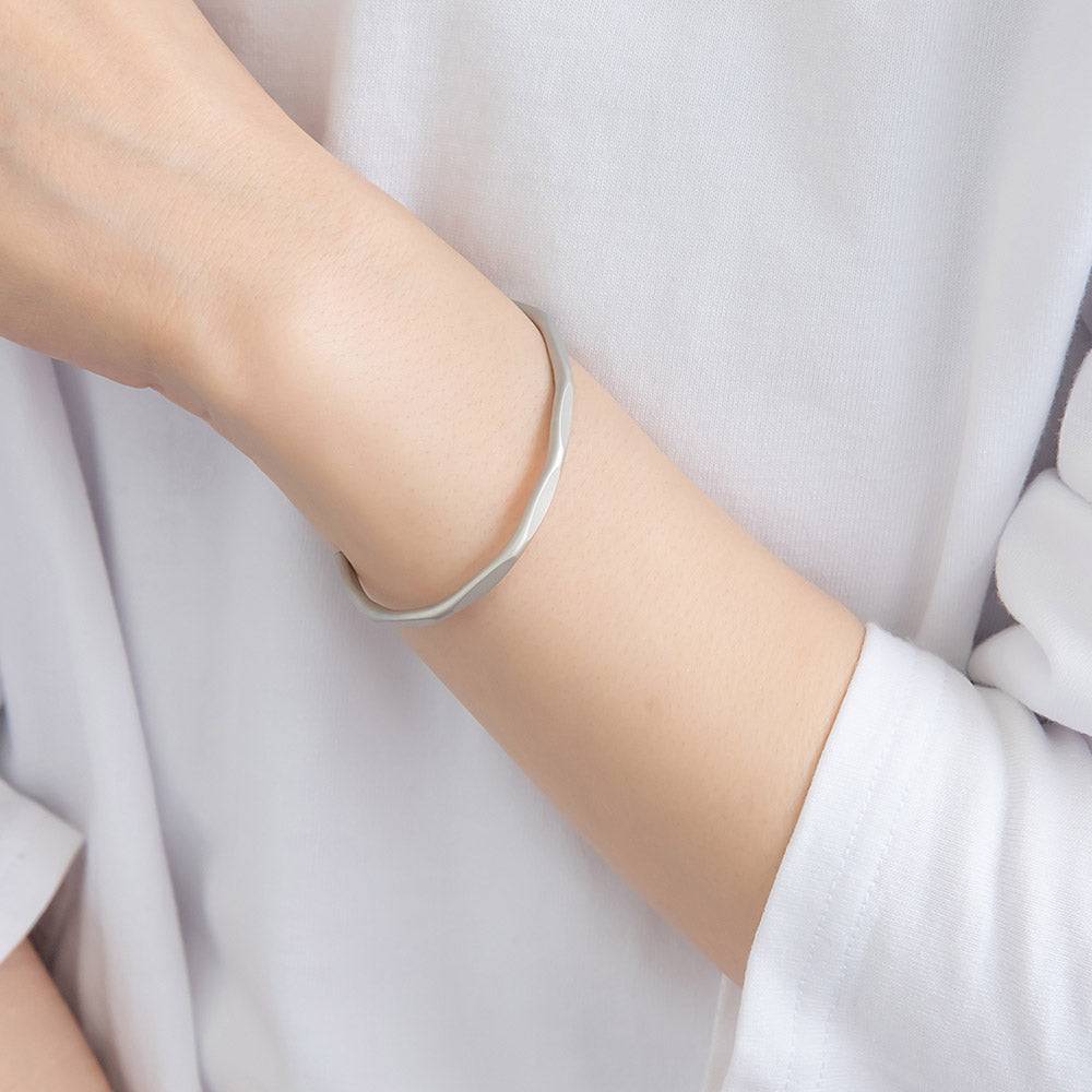 ブレスレット ニッケルフリー sable silver メタル フラット カット ライン スリム ハーフバングル