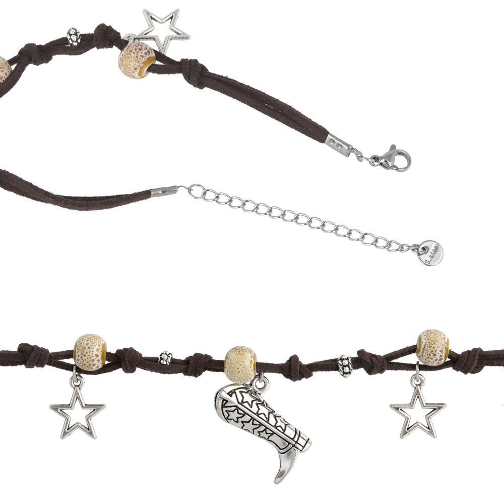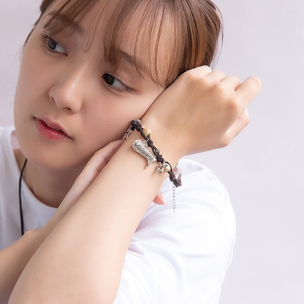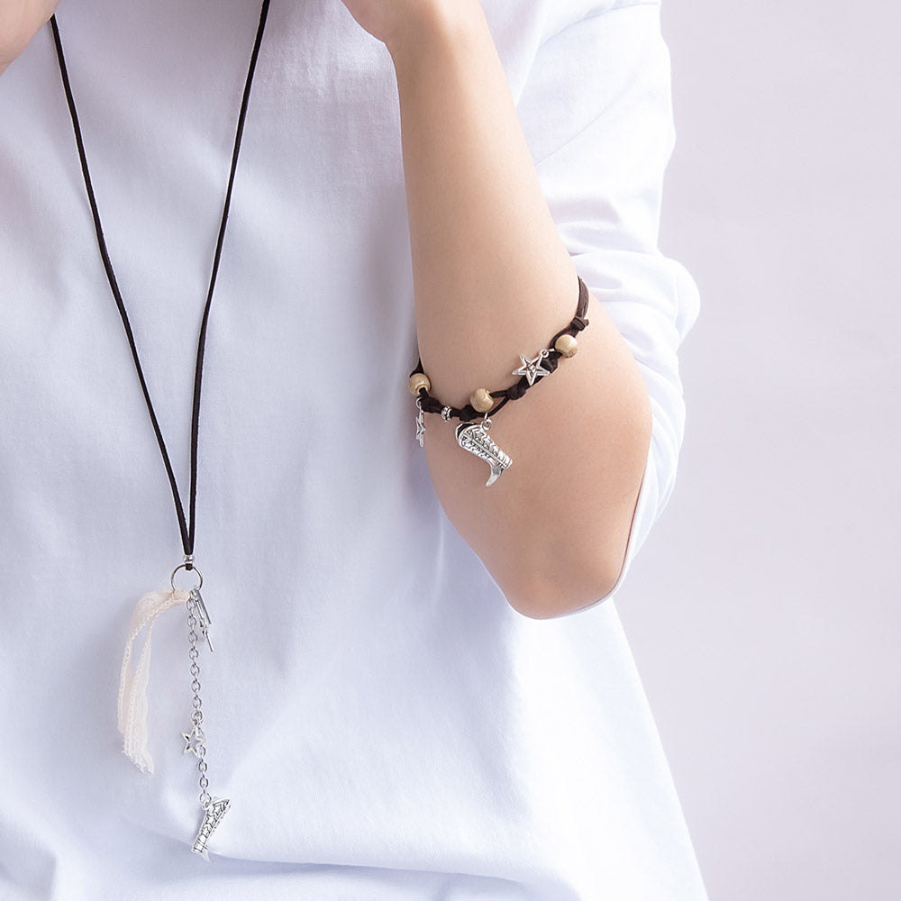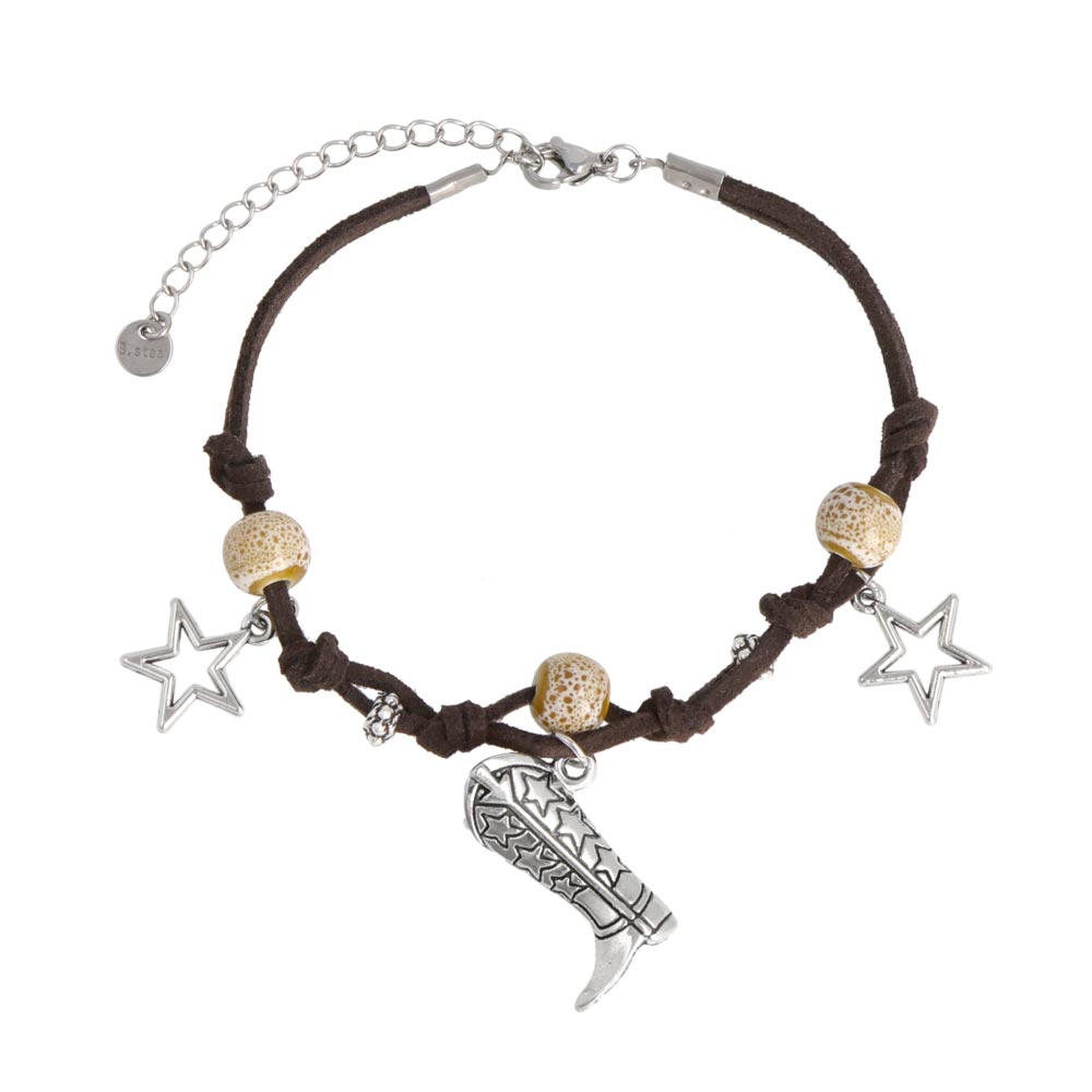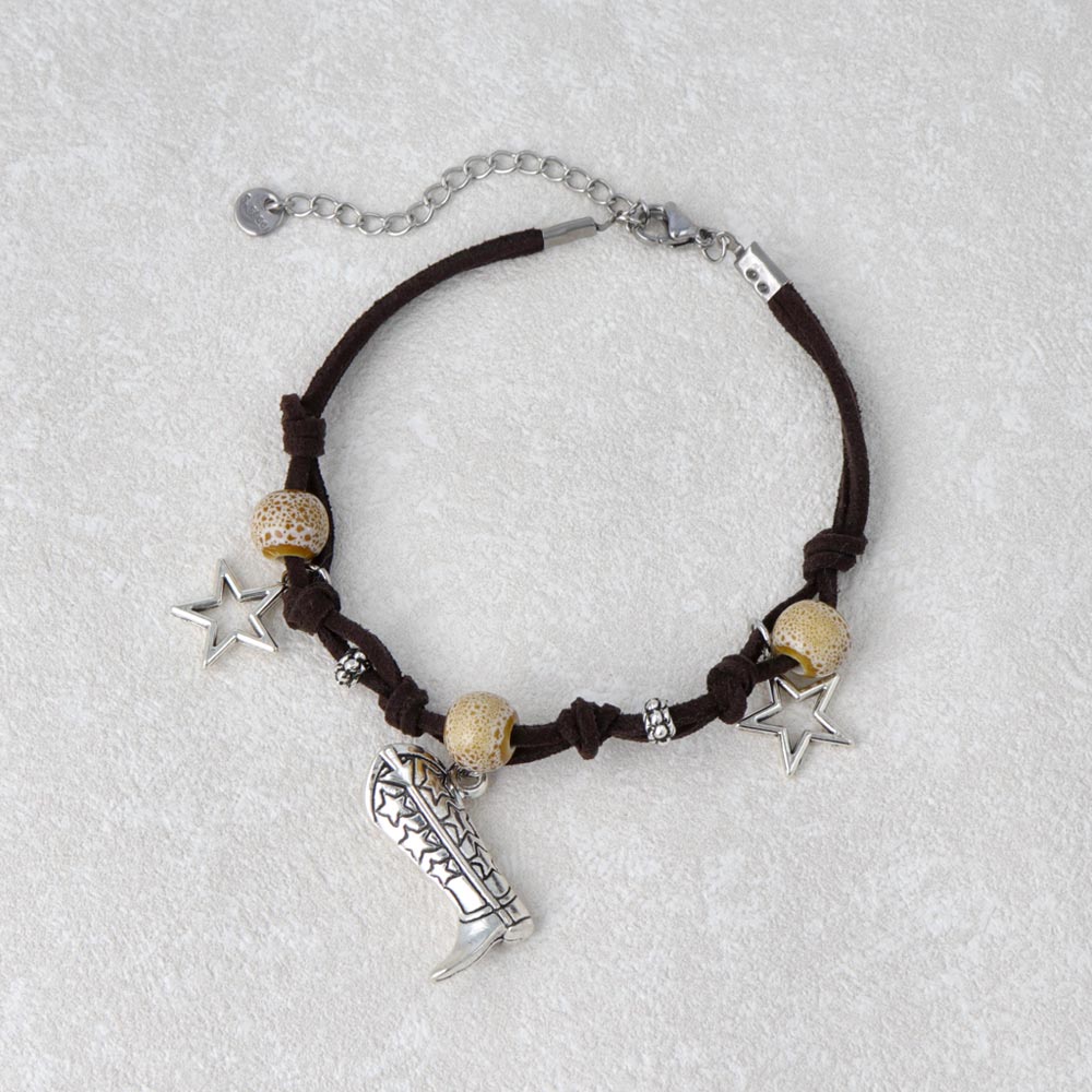 ブレスレット yura ウエスタンブーツ スター ステンレス ビーズ コード チェーンブレスレット
