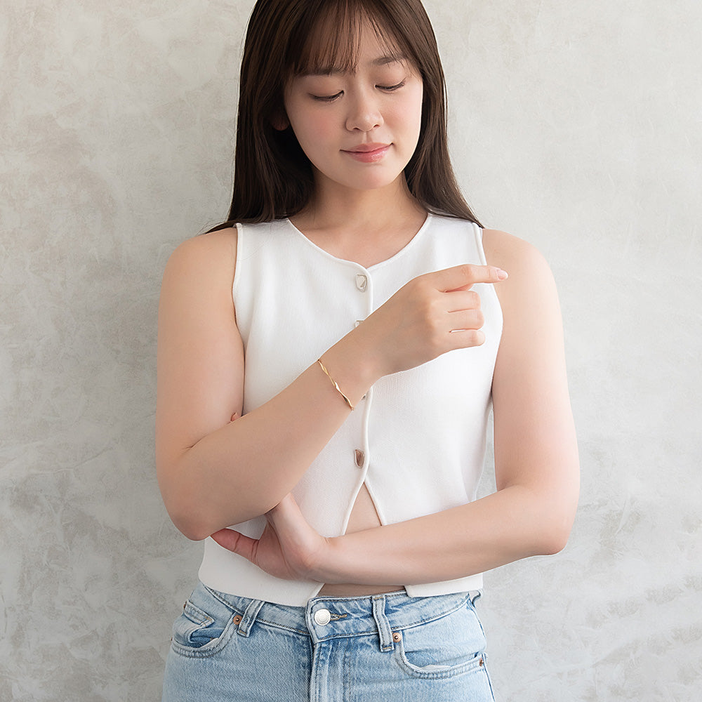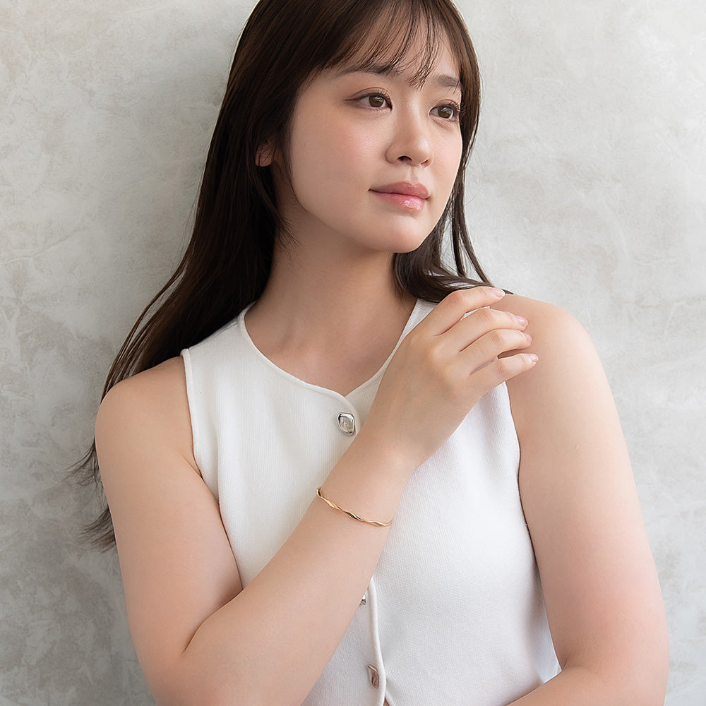 bl0622シンプルだから合わせやすい、定番のブレスレット。着脱簡単なハーフバングルタイプ。単品で手元にさりげないアクセントをプラスしたり、重ね付けにもピッタリ。