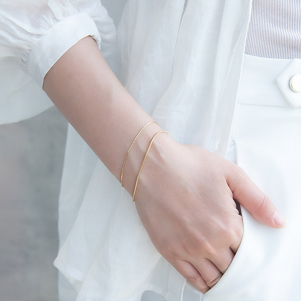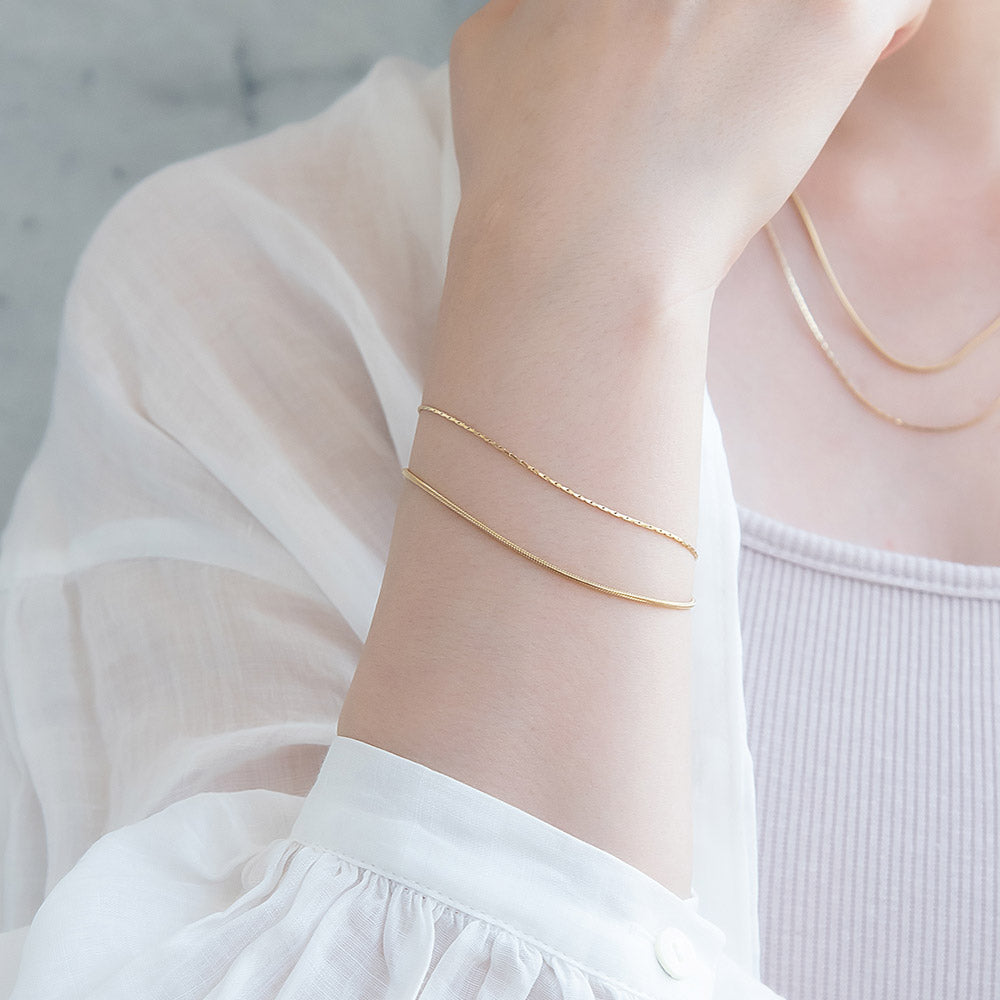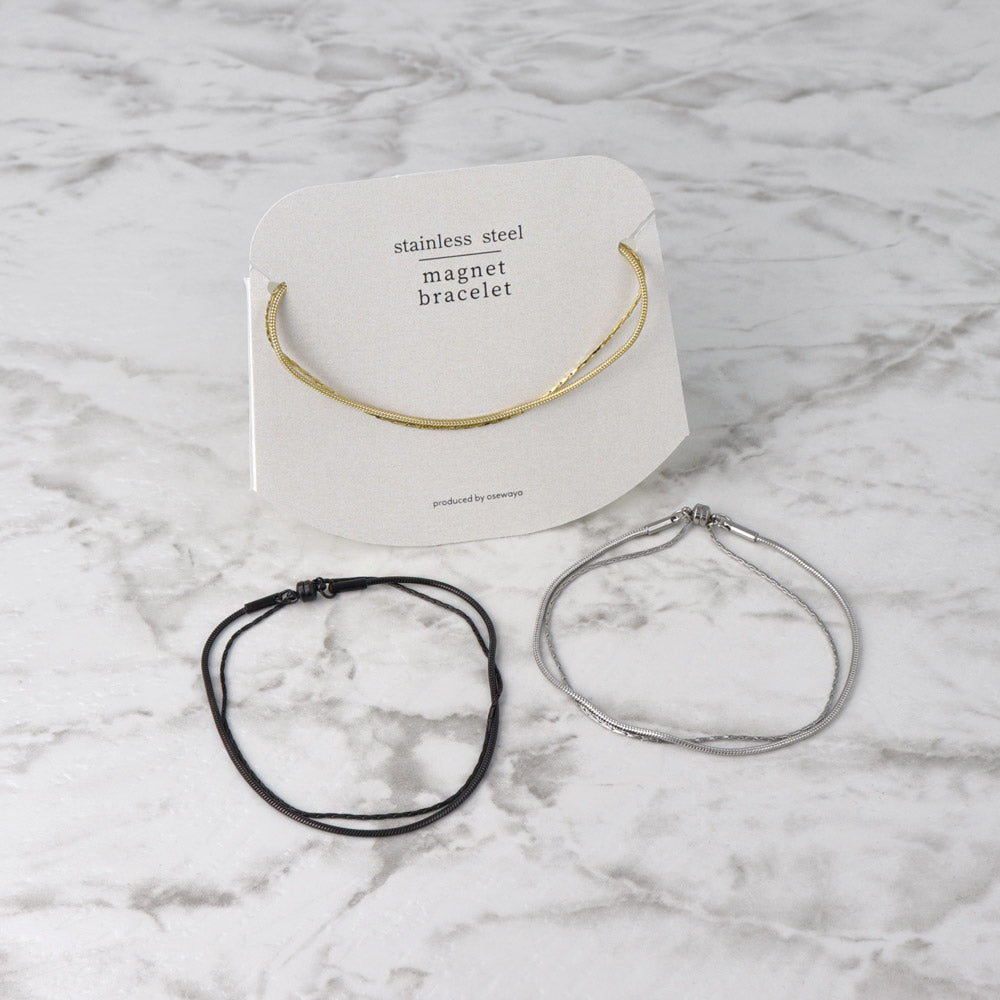 ブレスレット ステンレス 2連 細 スネークチェーン マグネットブレスレット