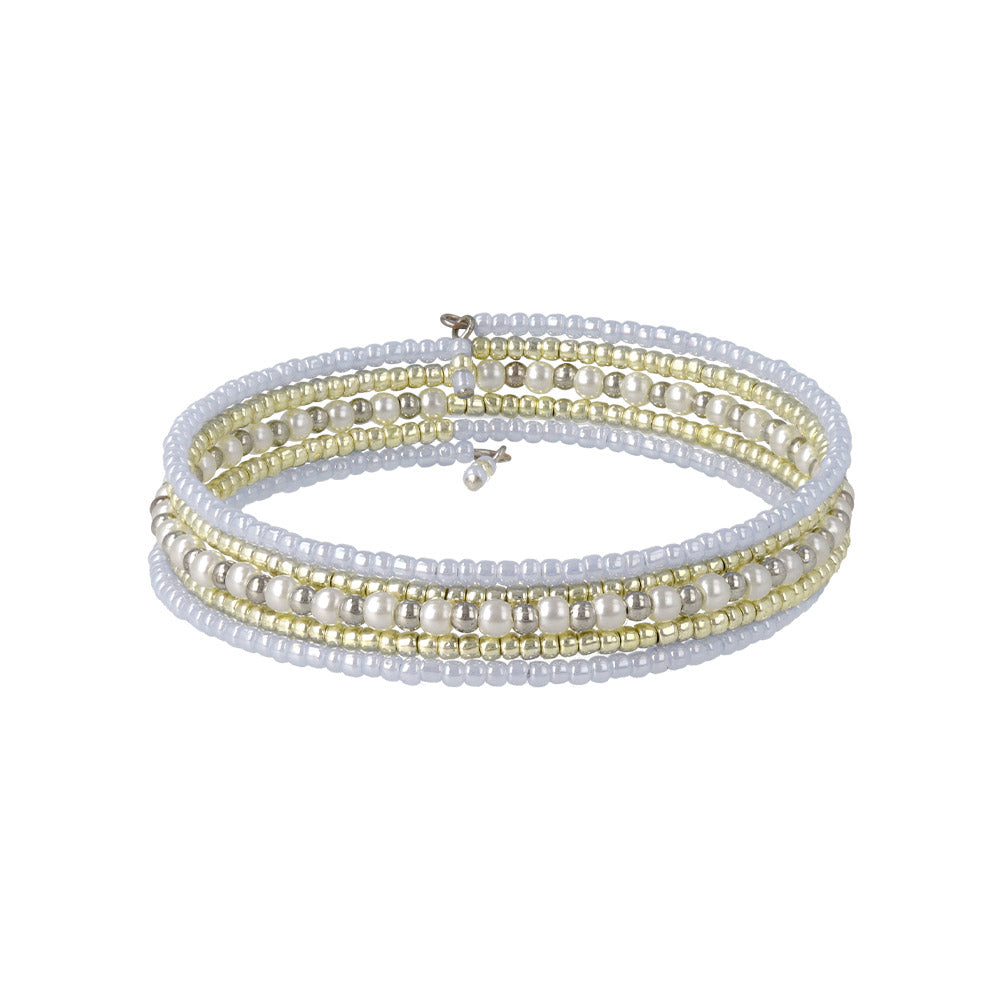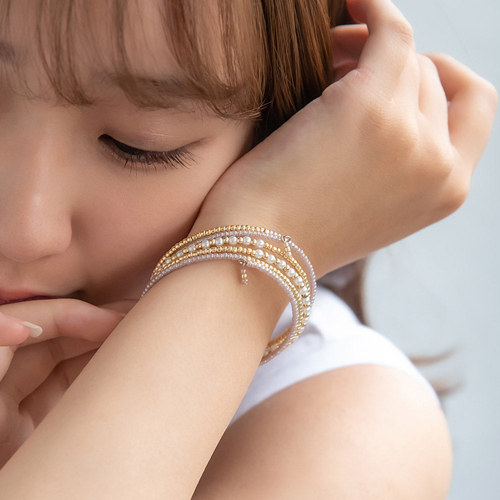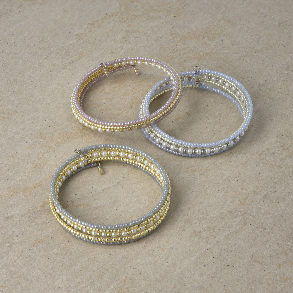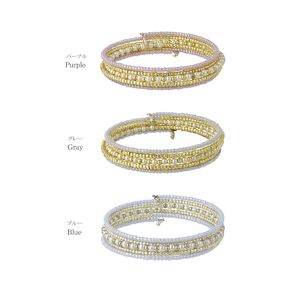 ブレスレット カラー ガラスビーズ パール スパイラルバングル