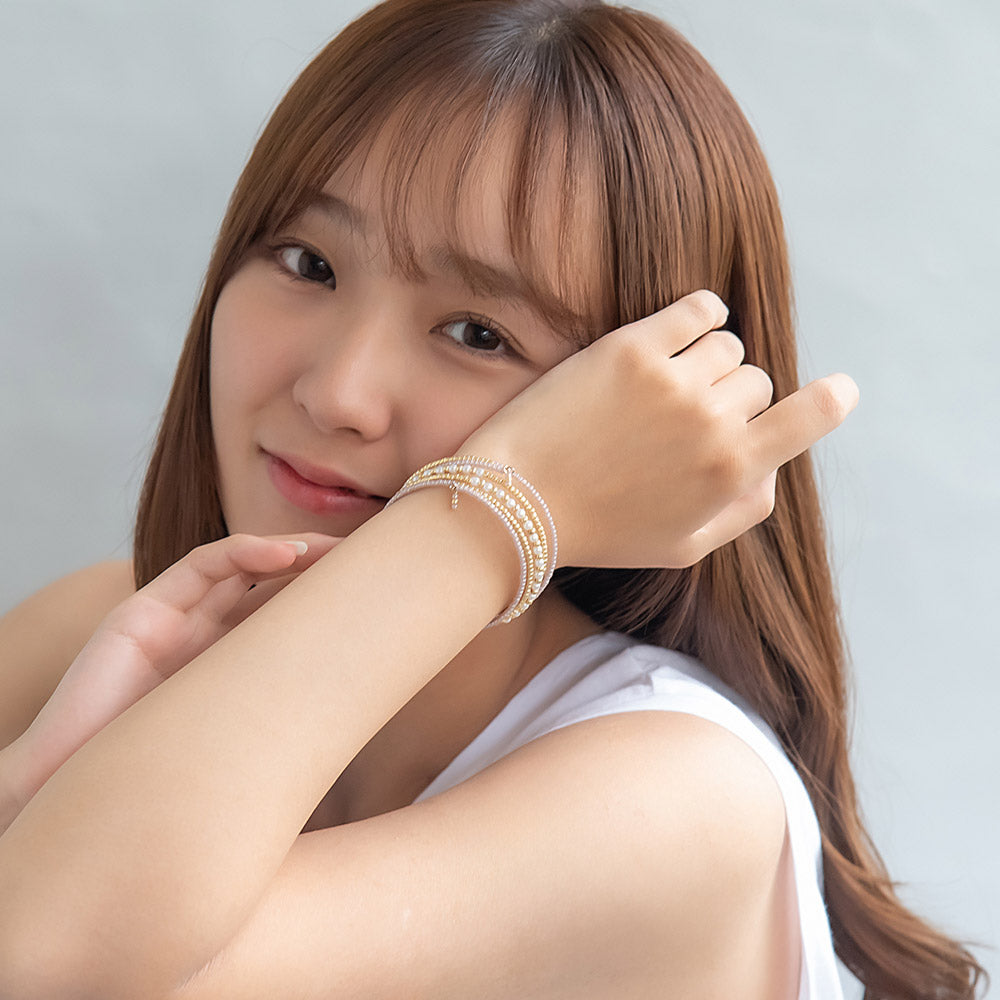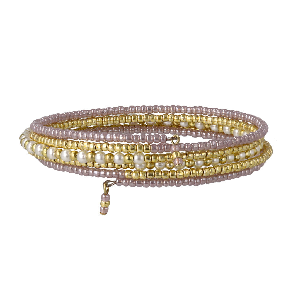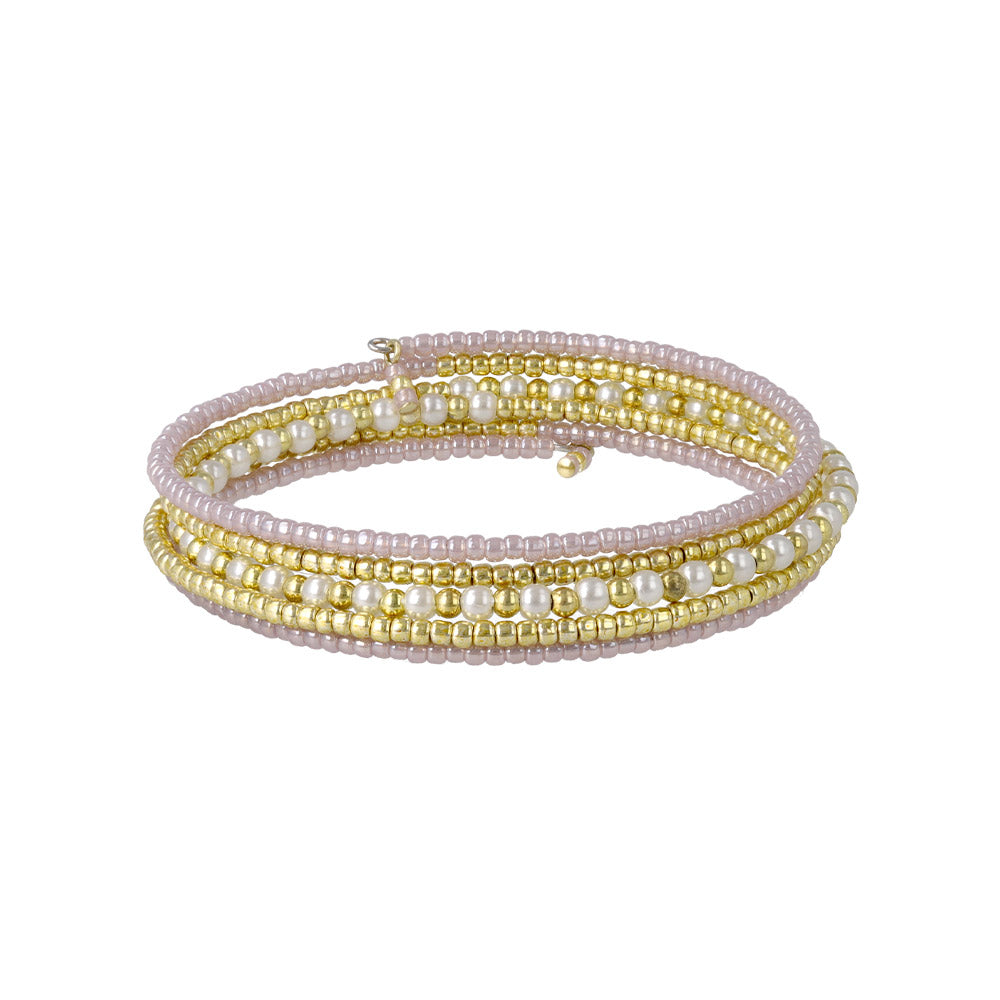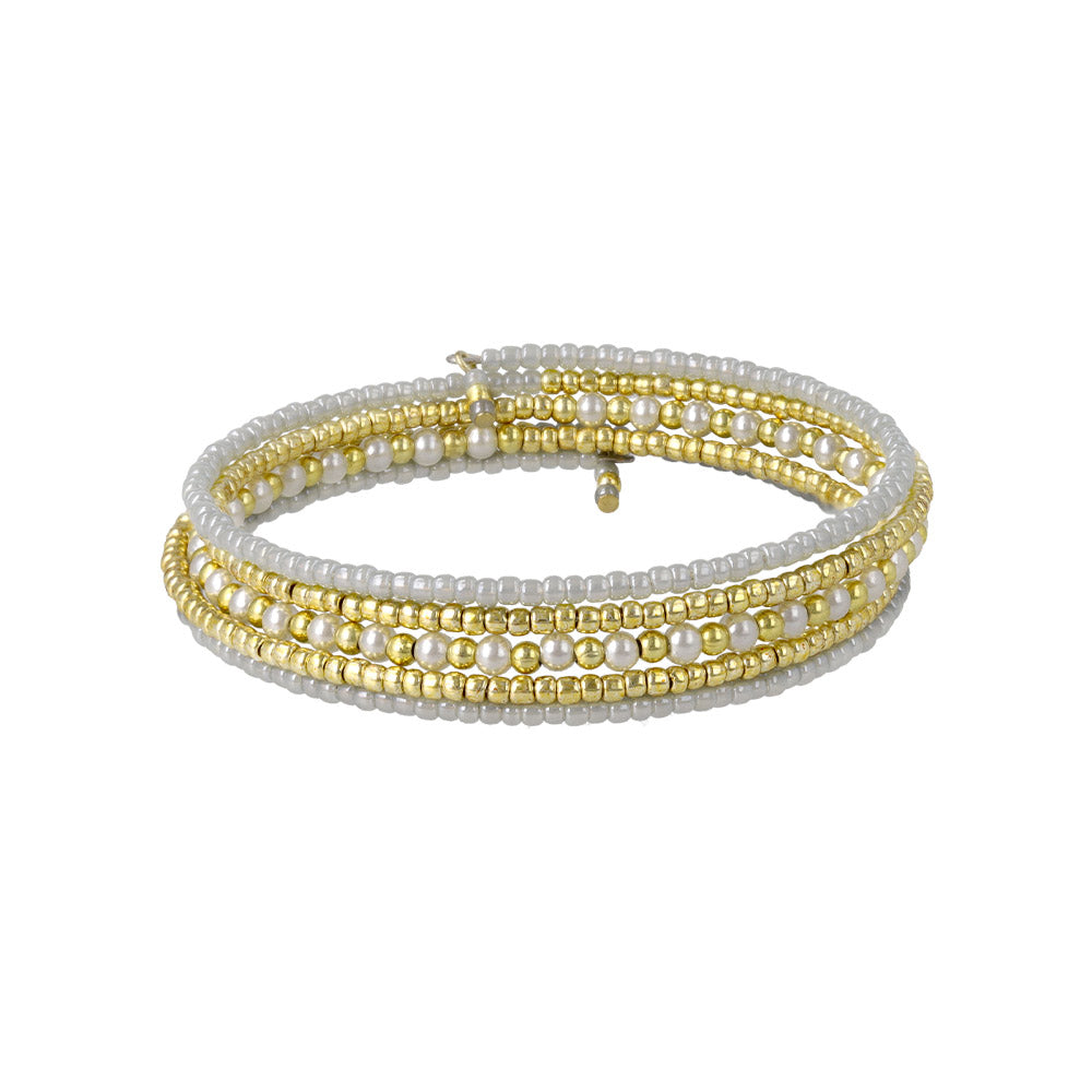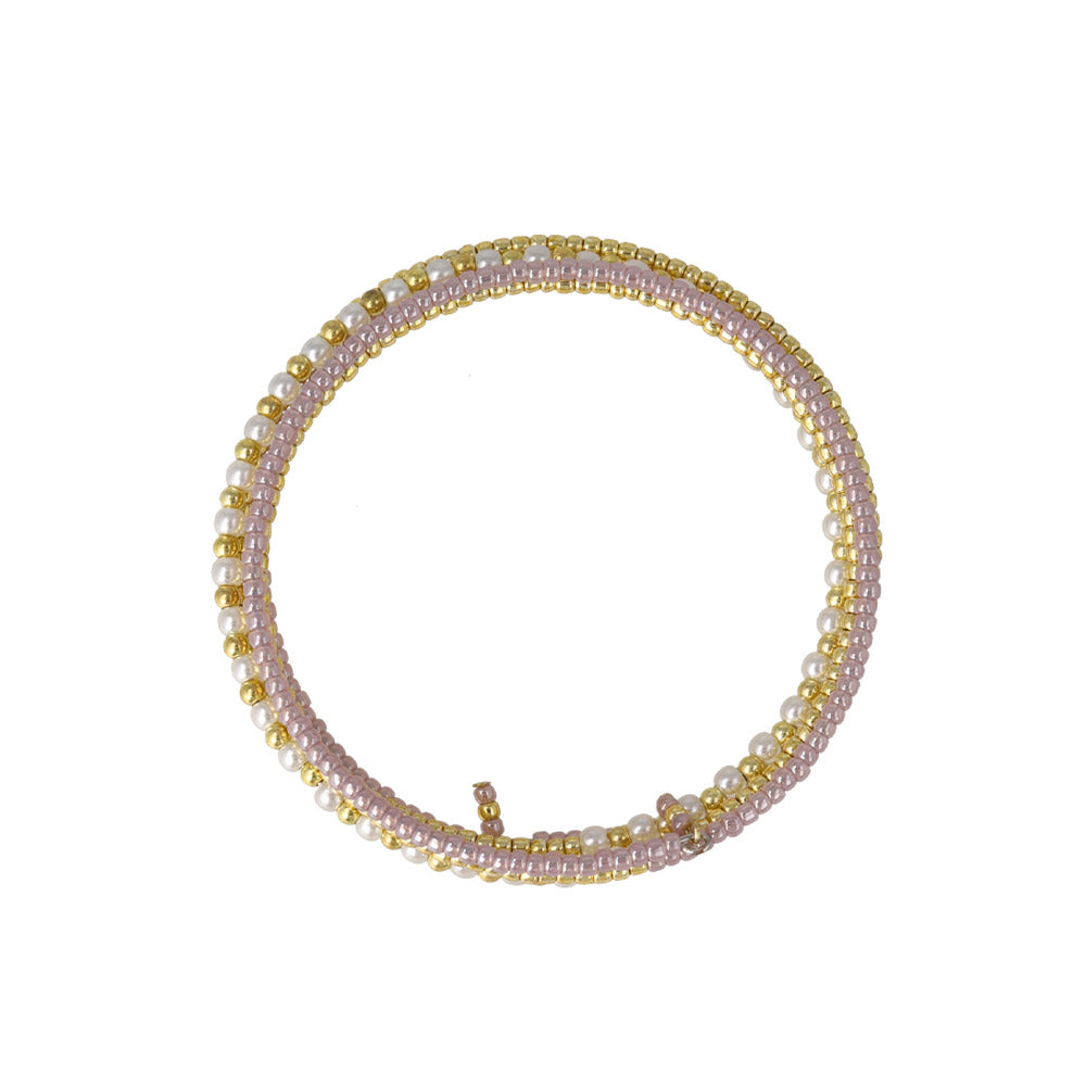 ブレスレット カラー ガラスビーズ パール スパイラルバングル